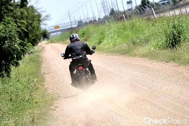 หลังจากผ่านการจราจรช่วงราชประสงค์ ประตูน้ำ ดินแดง เข้าสู่ถนนวิภาวดีที่การจราจรเบาบางกว่าก็เริ่มทำความเร็วได้มากขึ้น ช่วงที่ต้องเลาะเลี้ยวขี่สลับหยุดนิ่งในเมืองก็รู้สึกว่า บอบเบอร์ แบล็ค เป็นรถที่ขี่ง่ายกว่าที่คิด อาจมีแค่ช่วงถนนเป็นลอนหรือฝาท่อต่างระดับที่ควรระวังหน่อย เพราะด้านหน้ามักมีอาการดึงออกข้างบ้าง ด้วยขนาดยางที่ใหญ่และน้ำหนักรถที่มากขึ้น การขี่ผ่านช่องว่างระหว่างรถยนต์ด้วยความกว้างของแฮนด์ 760 มม. ยังเพียงพอผ่านได้ไม่ลำบาก กระจกมองข้างปลายแฮนด์ให้มุมมองและชัดเจนดี ทันทีที่ทางเริ่มเปิดโล่งผู้เขียนที่ปรับโหมดการขับแบบ Road ได้ลองกระแทกคันเร่งเพื่อแซงรถช้าพร้อมลองเปลี่ยนเลนตามจังหวะว่างก็พบว่า เครื่องยนต์พลัง 77 แรงม้า แรงบิด 106 นิวตันเมตรที่รอบมาไวของบอบเบอร์แบล็ค ตอบสนองได้อย่างดีเยี่ยม แรงบิดที่หนักหน่วงฉุดตัวรถทะยานไปข้างหน้าได้ตามใจนึก การพลิกเพื่อเปลี่ยนเลนเมื่อรถลอยตัวด้วยความเร็วระดับ 60-80 กม./ชม ทำได้อย่างคล่องแคล่วและเพลิดเพลิน คงดูเท่คล้ายกับการขี่ The Batpod ของแบทแมน นอกจากนี้ยังเพลินไปกับเสียงคำรามจากท่อไอเสียคู่ที่ประสานกันอย่างรื่นหูเวลาบิดคันเร่ง