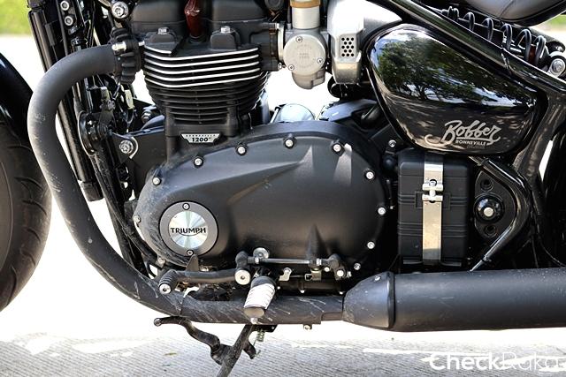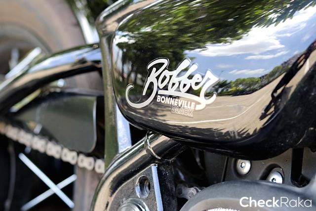 Triumph Bonneville Bobber Black รุ่นพิเศษดำสนิททั้งคัน ประกอบด้วย แฮนด์, แป้นเบรก, ที่พักเท้า, คันเกียร์, เบรก, คลัตช์ และบังโคลน นอกจากนี้ส่วนของเครื่องยนต์และฝาครอบสเตอร์ก็ดำสนิทเช่นกัน ด้านล่างมีดุมล้อสีดำ, เฮดเดอร์ท่อไอเสีย ให้เสียงดุดัน โดยรวมมองแล้วให้ความรู้สึกเข้มขรึม น่าเกรงขาม