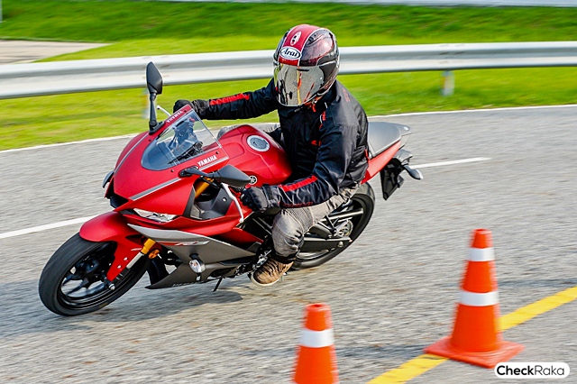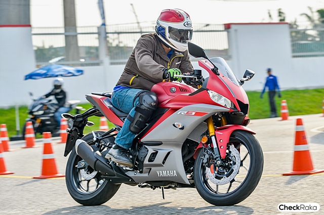 "R3 ใหม่ มีน้ำหนักเบาและคล่องตัว โดยเฉพาะช่วงกว้างของแฮนด์ที่แคบ ท่านั่งไม่โน้มมากนัก ความสูงเบาะกำลังพอดี ทำให้ขี่ง่าย เครื่องยนต์เดิมแต่ก็นับว่าตอบสนองทันใจ จากการปรับปรุงโครงสร้างรถในบางจุด อัตราเร่งตีนต้นจัดจาน การขับแบบสลาลอมนับว่าพริ้วเลย"