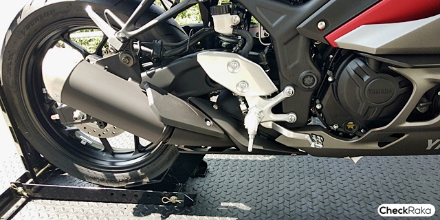 รูปลักษณ์ดูสปอร์ตดุดันให้ฟิลลุคเหมือนรุ่นพี่อย่าง R1 โดยรวมดูสวยงามกว่าเดิม จากการปรับแบบไมเนอร์ใหญ่ การทดสอบตัวรถตอบสนองการขี่ได้อย่างสนุกสนาน เหมาะกับเป็นรถขี่ในแทร็คแบบมินิเซอร์กิจ หรือเอาไว้แข่งแบบ sunday race พละกำลังที่ยอดเยี่ยม ทำให้การให้น้ำหนักคันเร่งเป็นไปอย่างง่าย การพลิกเข้า-ออกโค้ง ทำได้ง่ายและคล่องตัวมาก ท่านั่งนับว่าไม่ก้มมากเหมือนรุ่น R15 ให้ความพอดี สามารถนำไปใช้เป็นสปอร์ตทัวร์ริ่งในการใช้งานจริงได้ นับเป็นอีกไฮไลท์เด่นของรุ่นคลาส 300 ซีซี ในช่วงนี่้ ส่วนราคารอการประกาศจากทางยามาฮ่าในโอกาสต่อไป แต่เชื่อว่าไม่ต่างจากเดิมมากนัก น่าจะเพิ่มขึ้นมาอีกราว 5,000 บาท