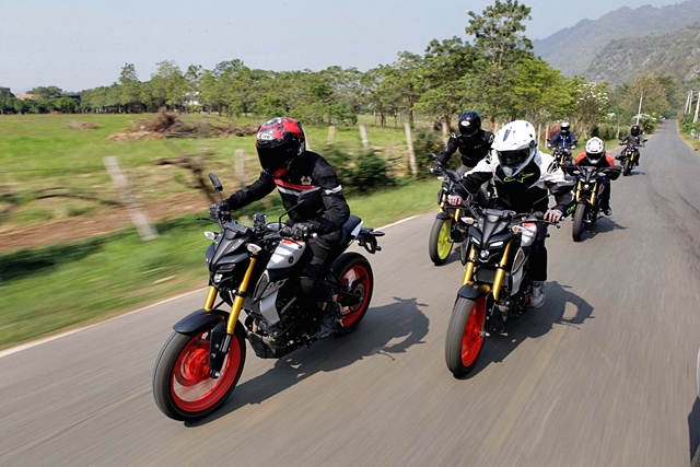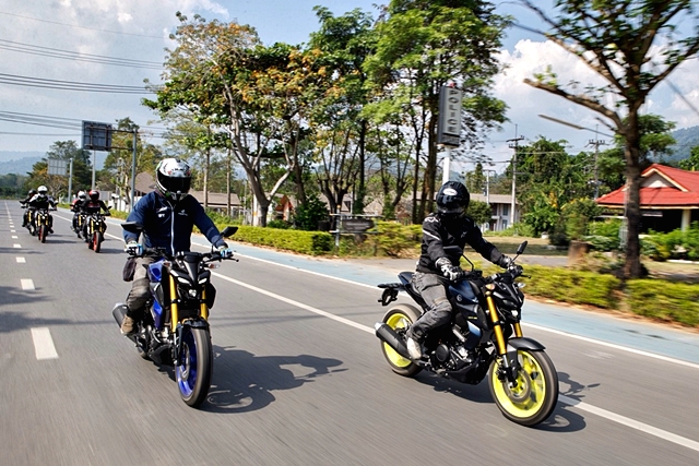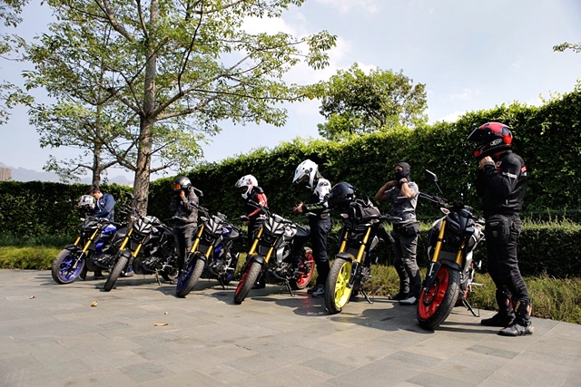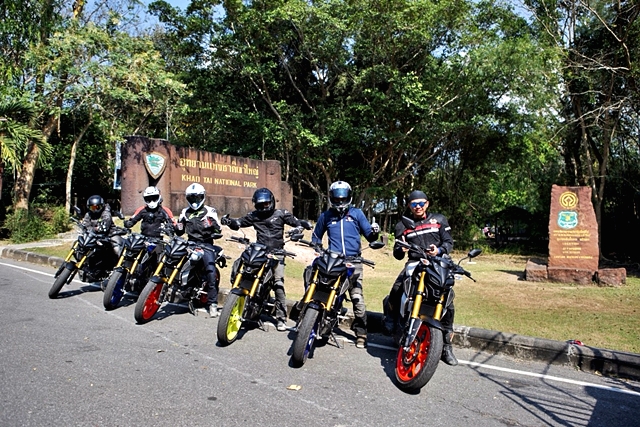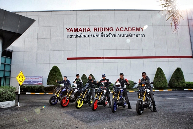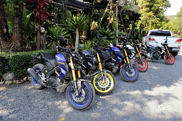 สมาชิกของทริปเป็นสื่อมวลชน 6 คน กับ Yamaha MT-15 จำนวน 6 คัน ที่จัดเตรียมไว้ให้ทดสอบทางไกล นับเป็นครั้งที่ 2 สำหรับผู้เขียนในการได้ลองขี่มอเตอร์ไซค์รุ่นนี้ หลังจากเปิดตัวและทดลองขี่ในสนามทดสอบของ Yamaha riding academy เมื่อ 11 ตุลาคมที่ผ่านมา แต่นั่นเป็นการลองขี่สั้นในสนามทดสอบจำลอง ทริปนี่้จึงเป็นการทดสอบขี่เสมือนการใช้งานจริงโดยเน้นการขี่แบบท่องเที่ยวทางไกลมากกว่า เพื่อพิสูจน์ว่ารถ Naked คลาส 155 ซีซี อย่าง MT-15 จะตอบสนองการขี่ไกลๆ ได้ดีแค่ไหน และถือโอกาสเปรียบเทียบกับ M-Slaz ที่ผู้เขียนเคยมีโอกาสได้ขี่ทางไกลมาที่เขาใหญ่เมื่อหลายปีก่อน