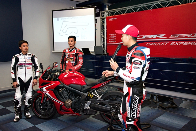 โดยงานนี้ คุณจุฑามาศ อินปริงกานันท์ ผู้ช่วยผู้จัดการทั่วไป ฝ่ายสื่อสารการตลาด ได้เดินทางมาให้การต้อนรับทีมสื่อมวลชนที่มาร่วมกิจกรรม CBR Series - Circuit Experience เป็นอย่างดี พร้อมมีนักแข่งทีมฮอนด้ามาเป็นผู้สอนเบื้องต้นก่อนการทดสอบ และมีทีมงานด้านผลิตภัณฑ์มาร่วมอธิบายรายละเอียดของรุ่นรถ CBR ที่ใช้ในการขี่ในสนามนี้ เพื่อความเข้าใจในตัวรถมากขึ้น