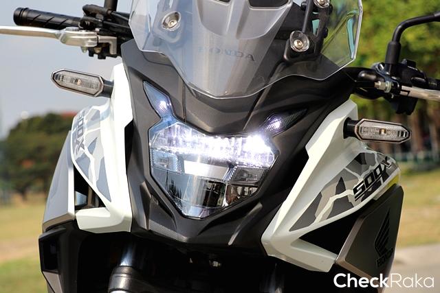 All New Honda CB500X ภายนอกที่ปรับเปลี่ยนชัดเจนก็มีไฟหน้าดีไซน์ใหม่ การออกแบบแฟริ่งที่ดักอากาศร้อนที่พัดผ่านหม้อน้ำออกข้างไม่ให้ผู้ขี่โดนไอร้อน และวินด์ชิลด์ที่ปรับให้สูงกว่าเดิม 20 มม. ก็ช่วยให้ขี่ทางไกลสบายขึ้นด้วย