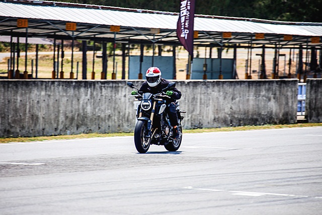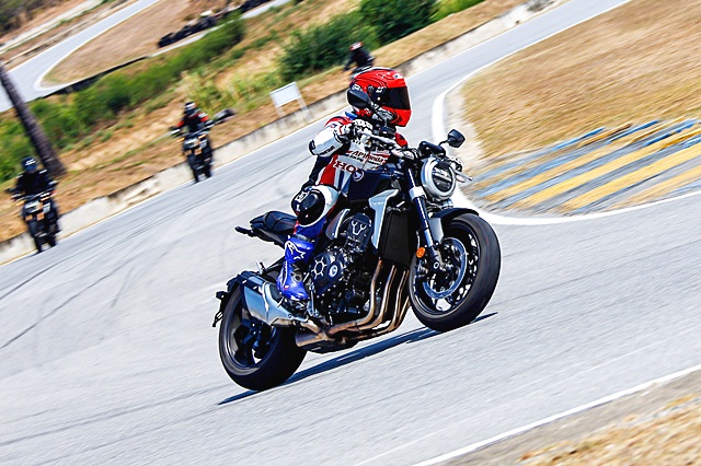 สำหรับใน CB1000R สัมผัสแรกคือ เครื่องยนต์แรงตอบสนองดี เมื่อใช้งานโหมด Sport ยิ่งขับขี่สนุกบิดติดมือ แต่เมื่อเปิดคันเร่งลากรอบยาวๆ นั้น จะรู้สึกว่าหน้าลอยขึ้นพอสมควร และส่วนท้ายที่ยุบตัวลงเล็กน้อย ทำให้ต้องใช้สมาธิและใช้แรงในการควบคุมแฮนด์ให้นิ่งมากขึ้น เพราะมีอาการส่ายอยู่บ้าง เนื่องจากอัตราเร่งที่มาไว้มากบวกกับช่วงล่างที่ปรับตั้งมาแบบเดิมๆ ที่เน้นการใช้งานบนถนนทั่วไป จึงค่อนข้างจะนุ่มนวลไปเมื่อลงแทร็ค