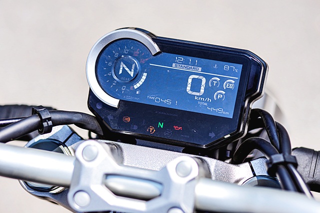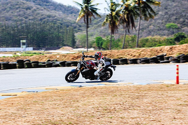 นอกจากนี้ระบบช่วงล่างเดิมๆ ที่ติดรถมาสามารถช่วยให้ขับขี่ในทางตรงและโค้งกว้างๆ ได้อย่างแนบเนียน แม้ผิวแทร็คบางช่วงเป็นเนิน อาการรถก็ค่อยข้างนิ่ง นับว่า CB650R ลงตัวทั้งความแรง ช่วงล่างที่แมทช์กับรถอย่างพอดิบพอดีครับ