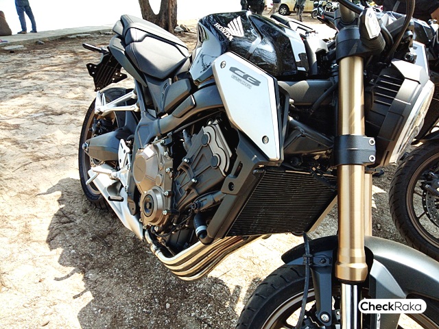 สำหรับ Honda CB650R นั้น มีจุดเด่นที่สามารถแยกออกจาก CB1000R นอกจากเครื่องยนต์, ท่อไอเสียที่อยู่ต่ำอย่างชัดเจนคือ กระบอกโช๊คคู่หน้าสีทอง, โลโก้ "Honda" ตรงกลางในโคมไฟหน้าสีดำ, หางท้ายกับที่ติดป้ายทะเบียนที่ยาวออกมา เป็นต้น
