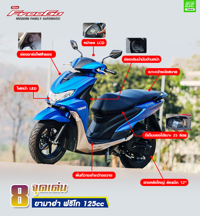 หากใครที่ชอบรถเล็กคล่องตัว เอาไว้ซอกแซกในเมือง คงต้องยกหน้าที่ให้กับเจ้า ยามาฮ่า Freego ที่ตอบโจทย์ได้ดีกว่า แถมประหยัดน้ำมัน มีที่เก็บสัมภาระใต้เบาะที่จุ และสิ่งอำนวยความสะดวกที่ให้มาก็ถือว่าคุ้มค่าตัว แม้ตัวจะเล็กเวลาเร่งแซงรถต้องใช้จังหวะเพิ่มกำลังสักนิด แต่ถ้าคุณไม่ได้ใช้งานขับออกต่างจังหวัด ก็ถือว่าคันนี้ตอบโจทย์คนใช้งานในเมือง หากใครสนใจเข้าไปชมตัวจริงได้ที่โชว์รูม หรือร้านค้าดีลเลอร์ทั่วประเทศ ที่สำคัญมี 4 สี ให้เลือก ดำ-แดง, น้ำเงิน (สีนี้ตัวจริงสวย), เทา-ขาว และสีดำ ราคาเริ่มต้นที่ 50,900 บาท