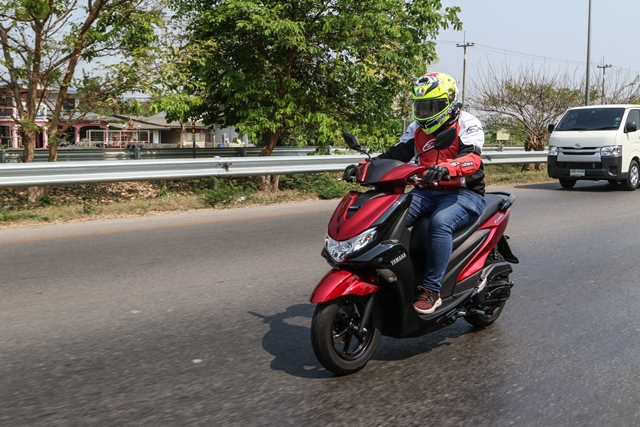 ขับกันได้สักระยะ หลังจากที่ฝ่าฟันรถติด และแวะเติมน้ำมันกันมาเต็มถัง ก็ได้จังหวะที่เราจะได้ทดสอบความเร็วกันแล้ว ในช่วงที่ต้องเร่งแซง ด้วยขนาดเครื่องยนต์ 125 ของ ยามาฮ่า ฟรีโก อาจต้องอาศัยจังหวะ หรือเรียกกำลังบ้างเล็กน้อย เพื่อเพิ่มแรงบิด แต่รถก็สามารถออกตัวและเร่งจังหวะได้ดี เพราะเครื่องยนต์ Blue Core ที่มีระบบเผาไหม้ดีกว่าเดิม แม้อาจจะต้องฝืนใจกันขึ้นมาบ้าง บิดกันจนหมดปอก แต่ก็สามารถผ่านไปได้แบบฉลุย
