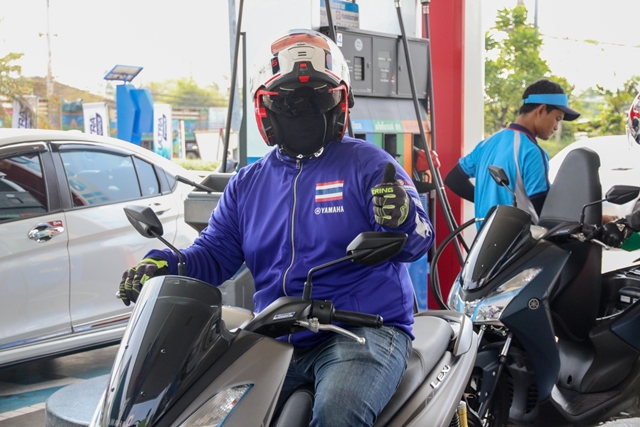 ทริปนี้ทีมงานเลือกเดินทางวันธรรมดา บนถนนช่วงเข้าเมืองนครปฐมจึงมีรถไม่มาก ทำให้เราเกาะกลุ่มกันไปแบบสบายๆ ช่วงสายเราแวะรับประทานอาหารพร้อมเติมน้ำมันกันให้เต็มถัง สำหรับยามาฮ่า ฟรีโก ให้อัตราสิ้นเปลืองน้ำมันเฉลี่ยอยู่ที่ 38 กิโลเมตร/ลิตร (ปล.ผู้ขับขี่ใช้ความเร็วกันอยู่ที่ 100 ขึ้นไป อาจมีการเร่งแซงหรือใช้ความเร็วบ่อยครั้ง) ซึ่งหากใช้ขับขี่ไปกลับในเมืองนอกจากรถเล็ก คล่องตัวแล้ว ก็ถือว่าประหยัดน้ำมันมากๆ