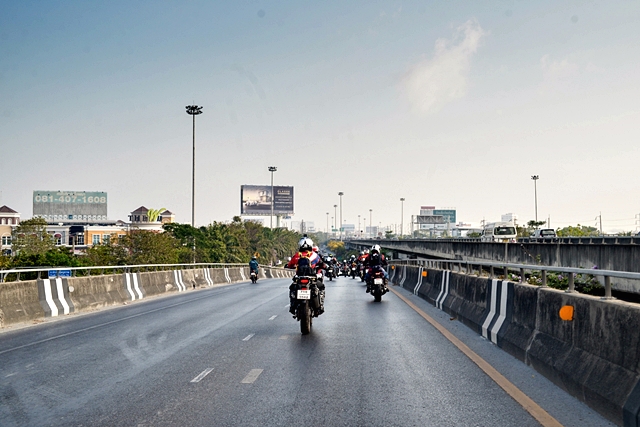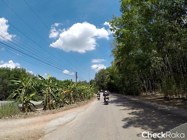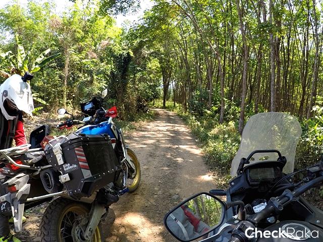 เรามุ่งหน้าไปทางฉะเชิงเทรา มีแวะทานอาหารกลางวันที่ร้านหมูกรอบขึ้นชื่อ แล้วเคลื่อนขบวนฯ มาถึงบ้านโพธิ์ ตัดเข้าสู่ถนนสายรองยังเป็นถนนดำขี่กันยาว จนใกล้เข้าเส้นทางสู่ช่วงออฟโร้ด เราแวะพักคลายร้อนที่ร้านกาแฟกันก่อน ช่วงนี้ผู้เขียนสลับมาขี่ฮอนด้า แอฟริกา ทวิน เกียร์ DCT รุ่นล่าสุด