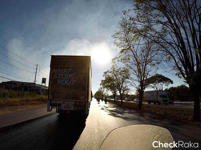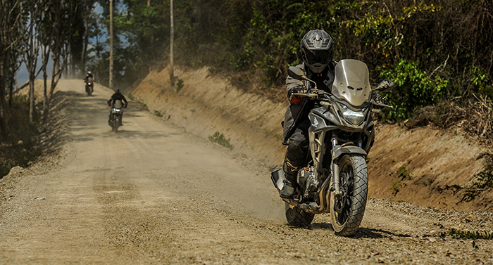 เราเดินทางกันในสายใช้ถนนรามอินทรามุ่งไปทางมีนบุรี ฝ่าการจราจรอันคับคั่งในช่วงตัวเมือง ซึ่ง 500X ก็ตอบสนองการขี่ผ่านช่องทางต่างๆ บนถนนได้เป็นอย่างดี พร้อมให้อัตราเร่งและชะลอเบรกได้อย่างน่าพอใจ เมื่อมาถึงช่วงสุวินทวงศ์ที่ถนนอยู่ในระหว่างการก่อสร้าง การจราจรติดขัดจากการถูกบีบเหลือเลนเดียวหลายช่วง และด้านข้างมักเป็นทางดินมีทรายลงไว้รอเทคอนกรีต ก็เลยเลือกลงไปวิ่งประหยัดเวลา นับเป็นข้อดีของแอดเวนเจอร์ไบค์ โดยเฉพาะจากฮอนด้า บิ๊กไบค์ ที่มีราคาเข้าถึงง่าย