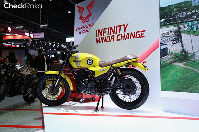 Zongshen Infinity 250 รถมอเตอร์ไซค์สไตล์ "Cafe" จากประเทศจีน ให้ความสวยแบบดิบๆ เครื่องยนต์ 250 ซีซี 5 เกียร์ แรงขึ้นเดินทางได้ทุกสภาพถนน มาพร้อมลวดลายกราฟิกย้อนยุค เบาะนั่งทรงเท่ ผสานกลิ่นอายความคลาสสิกและดุดันในคันเดียว เด่นด้วยโช๊คหน้าหัวกลับสีดำ เรือนไมล์กลมแบบดิจิทัล
