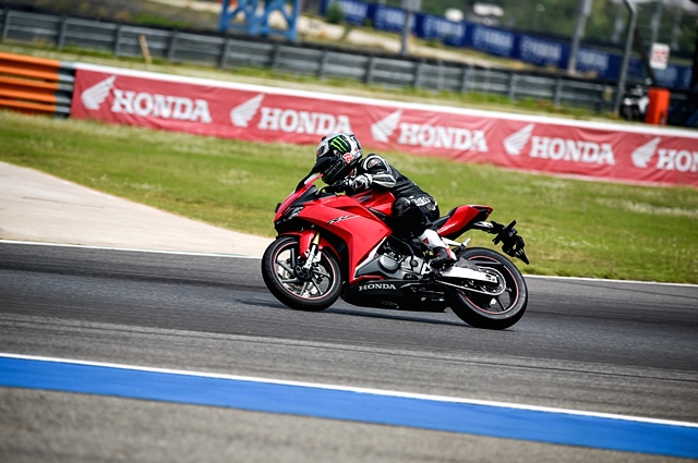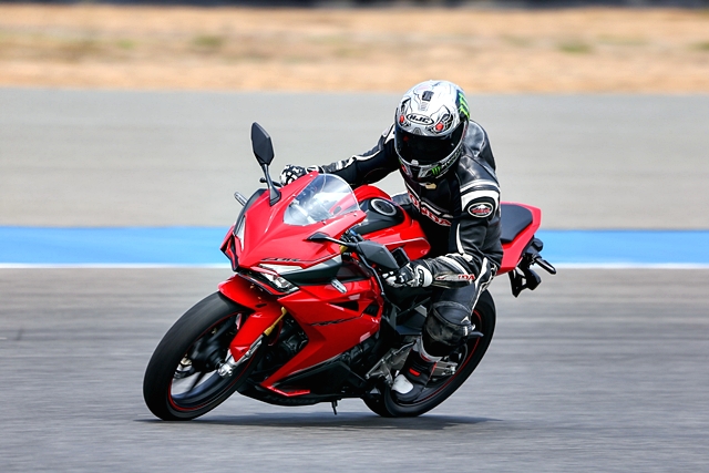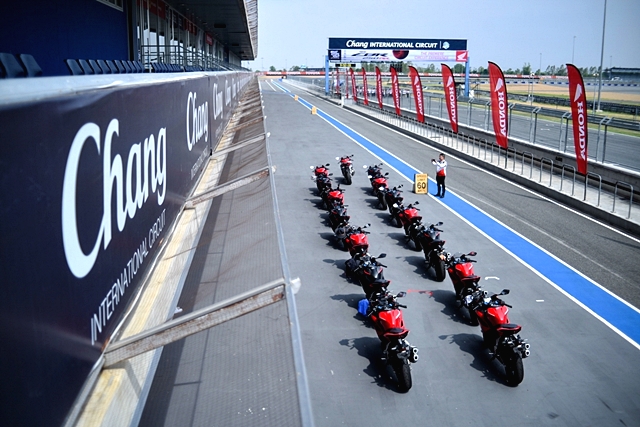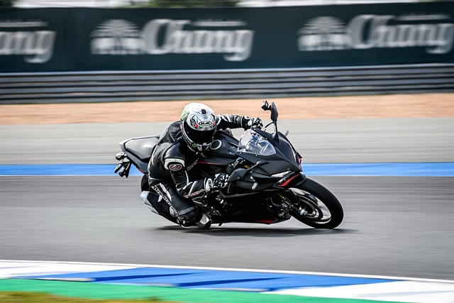 เมื่อได้สัญญานกลุ่มรถทดสอบทยอยออกตัวจากพิทสู่สนาม โดยมีผู้ฝึกสอนนักแข่งทีมฮอนด้าขี่นำสู่สนามและปิดท้าย สำหรับผู้เขียนได้ปรับโหมดการขี่ไว้ที่ Sport ช่วงรอบแรกยังเป็นการบล็อคความเร็วตามกัน เพื่อสร้างความคุ้นเคยกับตัวรถ ทั้งการจัดท่าทาง การใช้เกียร์ ในแต่ละโค้ง หลังจากผ่านไปรอบก็เข้าสู่การทดสอบแบบอิสระ ลองกันได้เต็มที่รอบสนาม หลังจากขี่ผ่านไป 2-3 รอบ พบว่า ความรู้สึกที่ได้จากตัวรถแตกต่างจาก CBR รุ่นพี่ 500&650 ที่เน้นเป็นรถสตรีทมากกว่า ให้ความรู้สึกเป็นสปอร์ตเซอร์กิตจริงๆ และตัวรถที่มีน้ำหนัก 168 กก. และเฟรมที่ออกแบบมาดี ช่วยทำให้การควบคุมตัวรถง่าย การเปลี่ยนเกียร์ทำได้ดีมาก กระชับไหลลื่นต่อเนื่อง คันเร่งไฟฟ้าตอบสนองคม ฉับไว ช่วงล่างและเบรกในช่วงแรกที่ยังขี่แบบสบายๆ ก็ตอบสนองได้อย่างน่าประทับใจ ฟิลลิ่งเบรกตอบกลับให้การชะลอหยุดที่ยอดเยี่ยม ช่วยให้การลงน้ำหนักเบรกได้ละเอียดขึ้น ผ่านไปในช่วงรอบแรกเหมือนได้พูดคุยทำความรู้จักกันพอสมควร