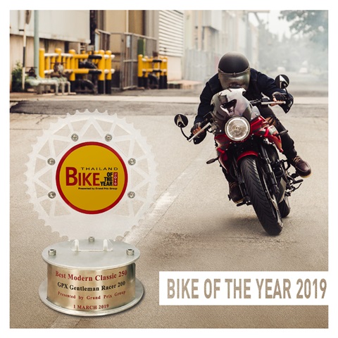 GPX Gentleman Racer200 ได้รับรางวัลในสาขา Best Modern Classic 250 จากเวที Bike of the year 2019 ซึ่งถือเป็นเวทีระดับประเทศ!