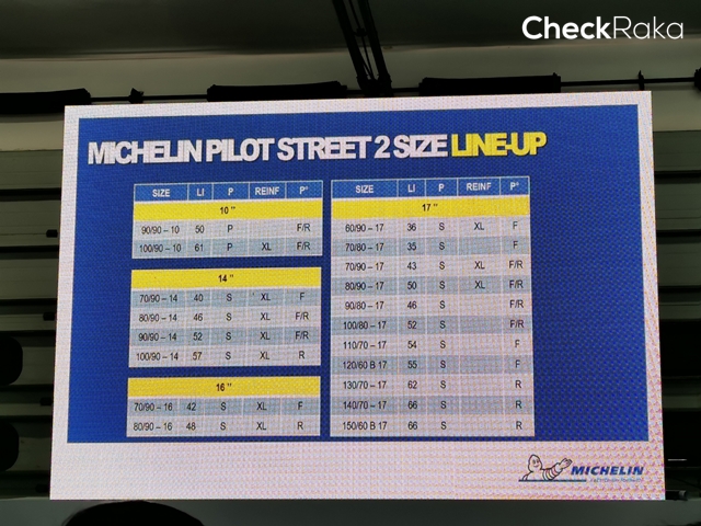 Michelin Pilot Street 2 มีขนาดยางล้อหน้า 13 ขนาดและล้อหลัง 12 ขนาดให้เลือกหลายขนาดตั้งแต่