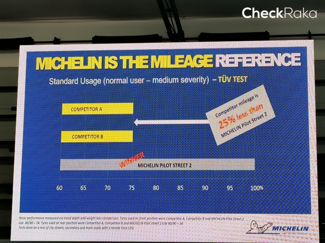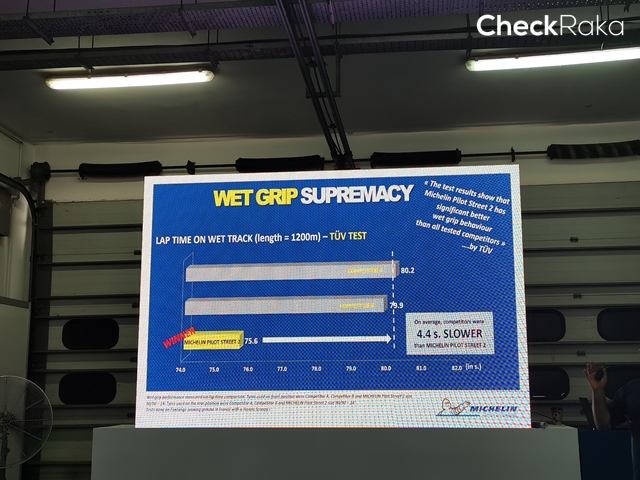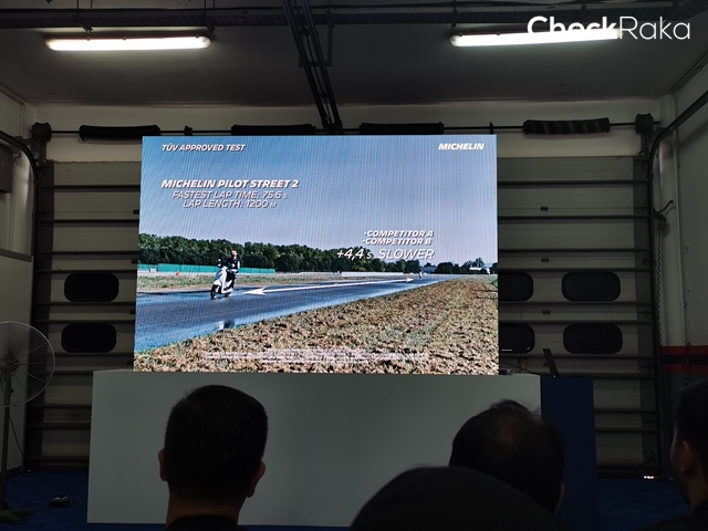 Michelin Pilot Street 2 ได้รับการทดสอบจริงจากหน่วยงานอิสระ TUV TEST ที่ทางมิชลินไม่มีส่วนเกี่ยวข้อง ทำการทดลองขับขี่ในสภาพถนนที่มีพื้นผิวต่างๆ มากมาย ทั้งแห้ง เปียก ขรุขระ ผ่านอุณหภูมิต่างๆ มิชลิน ไพลอต สตรีท 2 ทำเวลาต่อรอบในการวิ่งบนสนามแข่งระยะทาง 1.2 กิโลเมตรที่มีพื้นผิวเปียก ได้เร็วกว่ายางคู่แข่งรายหลักอยู่ที่ 4.4 วินาที*