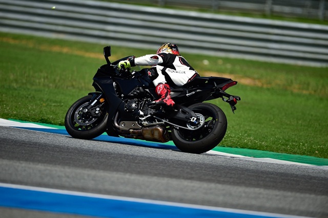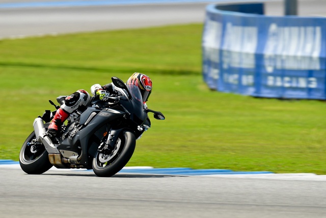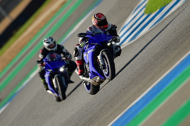 ส่วนการทดสอบ ยามาฮ่า R1 ใหม่ ปี 2020 แบ่งออกเป็น 5 กลุ่มทดสอบ แต่ละกลุ่มได้ทดสอบกันทั้งหมด 2 ช่วง ช่วงละ 15 นาที โดยไล่เรียงตามลำดับกลุ่ม มี R1 ใหม่สำหรับสื่อทั้งหมด 7 คัน ผู้เขียนได้อยู่กลุ่มที่ 2 การออกไปขี่ทดสอบมีผู้ฝึกสอนขี่นำ ไปตามความเร็วที่ผู้ตามสามารถไปได้ การขี่ในช่วงแรกนับเป็นการทำความคุ้นเคยกับตัวรถและลองความต่างระหว่างโหมด a กับ b ที่ทางทีมงานได้เซ็ตไว้ โดยระดับกำลังและความหน่วงของเครื่องยนต์ไม่เหมือนกัน โดยโหมด b ถูกปรับให้มีกำลังสูงสุด และระดับแทร็คชันน้อยกว่า ซึ่งเราได้ลองขี่ในช่วงแรกทำให้พบถึงความแตกต่างอย่างชัดเจน พลังที่ปลดปล่อยออกมาตามจังหวะการเปิดคันเร่งนั้น แรงอย่างท้วมท้นผสานกับระบบเกียร์แบบควิกชิฟต์ทำให้การไต่และลดความเร็วทำได้อย่างแม่นยำ ไหลลื่นและต่อเนื่องดีมาก ระบบชดเชยรอบที่ยอดเยี่ยมสามารถให้การชิฟต์เกียร์รวบลงทีเดียว ทำได้ดีและไม่ต้องมาคอยหน่วงทีละเกียร์ การพลิกเข้าออกโค้งทำได้อย่างสนุกให้สมดุลที่ดี แต่มีบ้างที่ผู้เขียนโดนพลัง 200 แรงม้าเล่นงานจนเบรกลึกหลุดไป แต่ระบบช่วยเหลือก็ช่วยให้การควบคุมทำได้ง่ายขึ้น