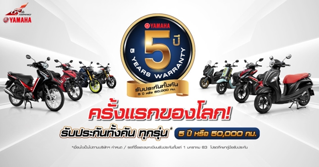 นอกจากจะได้รถจักรยานยนต์ที่ราคาสบายกระเป๋าแล้ว YAMAHA GT125 ยังมาพร้อมการรับประกันทั้งคัน 5 ปี หรือ 50,000 กิโลเมตร* เป็นครั้งแรกของโลก!