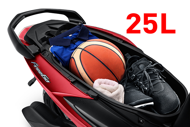 - ใต้เบาะมีช่องเก็บของที่จุได้ 25 ลิตร ใส่หมวกกันน็อกได้ 2 ใบ สบายๆ