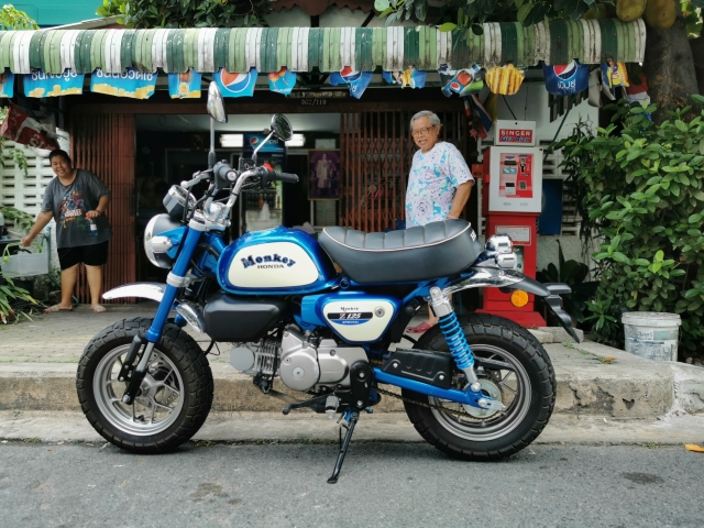 ผู้เขียนเลยขอไปเริ่มต้นที่คับเฮ้าส์เอกมัย เพื่อฟังแนวคิดของทางการเป็นโชว์รูม และโมโตไลฟ์สไตล์คาเฟ่ที่ไม่เหมือนใคร โดยได้คุณณัฐฐ์ภัธ เวียงสมุทร์ ผู้ช่วยผู้จัดการคับเฮ้าส์เอกมัย และเป็นโมโตสไตล์ลิสด้วยมาพูดคุยให้ฟัง (ตามคลิปยูทูปด้านบน) พร้อมกับแนะนำมังกี้ Custom Blue Cherry Edition ให้ไปทดลองขี่ก่อน บอกตามตรงว่าตอนนั้นรู้สึกเฉยๆ แต่แอบชอบลายสเปนเซอร์ที่ทำมาจำกัด ทั้งในตัวซูเปอร์คับและมังกี้ ช่วงที่เราได้พูดคุยกันในคับเฮ้าส์พร้อมจิบกาแฟหอมๆ ของทางร้านไปด้วยนั้น ก็สังเกตว่ามีลูกค้าแวะเวียนเข้ามาเป็นระยะ ทั้งดูรถใหม่ นำรถมาเซอร์วิส เข้ามาปรึกษาการตกแต่งเพิ่มเติม อย่างหลังนี่ล่ะคือ เสน่ห์ที่แท้จริง การคัสตอมรถแบบสนุกๆ ตามใจเรา ผู้เขียนเห็นลูกค้าวัย 50 อัพท่านหนึ่ง ใจคิดว่าเข้ามาดูรถให้ลูกชาย แต่เปล่าเลย น้าเขาเข้ามาดูของแต่งเพิ่มหลังจากเพิ่งสอยล้อ Galespeed ไปแล้วชุดหนึ่ง ได้ยินว่าสนใจชุดเบรกแบบลิมิเต็ดของยี่ห้อเดียวกันที่มาแบบ ฺBox Set ฟังราคาแล้วก็หนาวทั้งๆ ที่อากาศในนั้นเย็นอยู่แล้ว จากตรงนี้ทำให้เราเริ่มมองภาพออกแล้วว่าทำไม ฮอนด้า มังกี้ ถึงครองใจใครหลายคนไม่ใช่แค่ซื้อมาขี่อย่างเดียวนี่เอง การมานั่งพูดคุย ปรึกษา จิบกาแฟดูของแต่งในบรรยากาศแบบคาเฟ่บริสโตมันทำให้ชีวิตไบค์เกอร์สายนี้ดูชิลดีจริงๆ