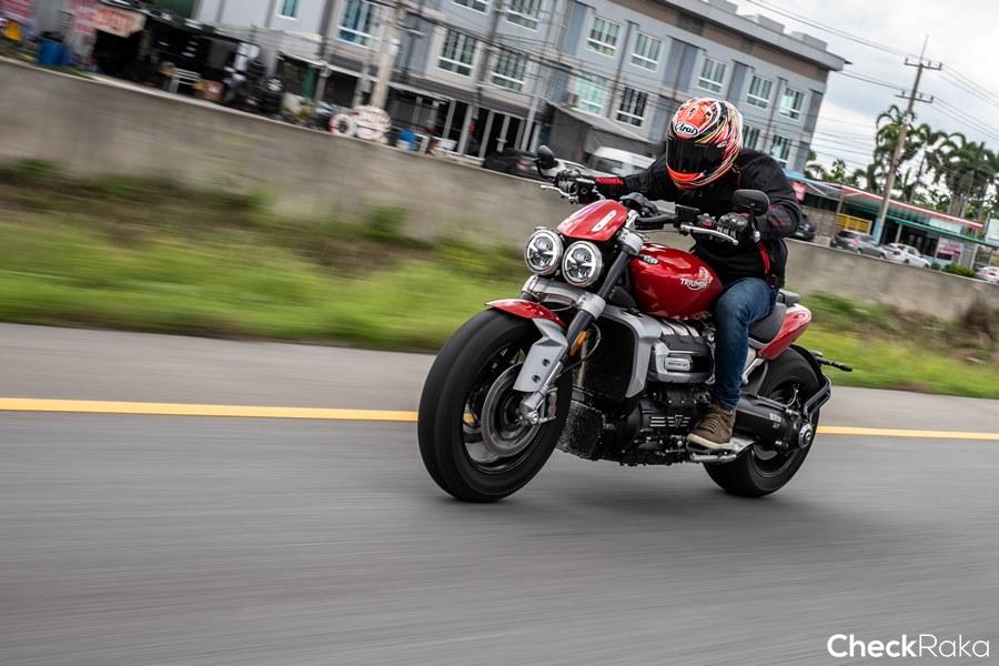 Rocket 3R ใหม่ คือ บิ๊กไบค์ที่มีทั้งขนาดและขุมพลังใหญ่สมความเป็นบิ๊กไบค์อย่างแท้จริง และมีอัตราเร่งที่โหดสุดๆ โดยสเปคสามารถทะยานแหวกอากาศจาก 0-100 กม./ชม. ภายในเวลาไม่เกิน 3 วินาที นับเป็นตัวเลขระดับซูเปอร์คาร์ ด้วยขุมพลัง ช่วงล่าง และเบรก ผสานการทำงานให้ Rocket 3R ใหม่ พริ้วไหวโดดเด่นอยู่บนถนนได้อย่างสมศักดิ์ศรีไทรอัมพ์ เป็นรถที่ขี่แล้วชวนให้นึกถึงรุ่น bobber อยู่บ้าง แต่รายละเอียดและความรู้สึกที่ได้ต่างกันเกือบหมด การขี่ที่ควบคุมง่าย เดินทางไกลได้สบาย คิดว่ารุ่น Rocket 3GT น่าจะยิ่งสบายกว่านี้ด้วยองศาแฮนด์และชิลด์หน้า แต่เมื่อเทียบกับรถรุ่นอื่นในระดับราคาขนาดนี้ เชื่อได้เลยว่า Rocket 3R ใหม่ น่าจะเป็นพระเอกในใจของใครหลายคน ยิ่งถ้าได้ลองขี่ด้วยแล้ว ถ้าบอกว่าราคาค่าตัวคันนี้เกือบล้านบาทอาจฟังผ่านๆ แล้วแพง ถ้าบอกไม่ถึงล้านบาท กับขุมพลังขนาด 2,500 ซีซี ก็จะกลายเป็นความคุ้มค่าทันที และเมื่อเทียบกับรถครุยเซอร์ราคาระดับล้านบาทบวกลบ ก็จะยิ่งพบว่าโดนใจกว่าเห็นๆ ทั้งสเปคและรูปลักษณ์