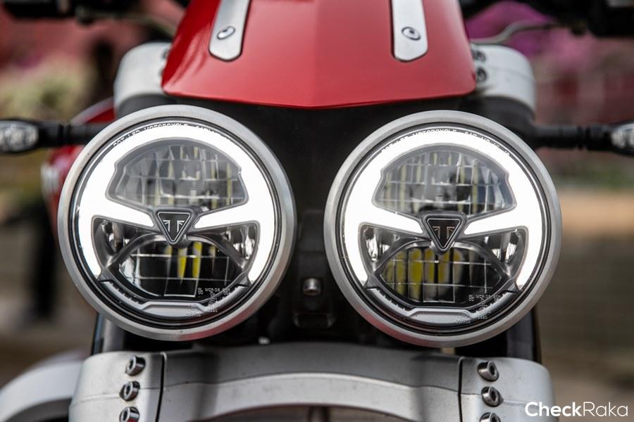 หลังคุ้นเคยกับตัวรถ ผมก็ลัดเลาะมาถนนแจ้งวัฒนะ ข้ามแยกปากเกร็ด ไม่นานก็ออกมาถึงทางหลวงหมายเลข 307 เพื่อมุ่งหน้าสู่ตัวเมืองปทุมธานี เส้นทางช่วงนี้เปิดโล่งใช้ความเร็วได้เต็มที่ พบว่าช่วงทำความเร็วในแต่ละเกียร์มีความยึดหยุ่นไม่น้อยด้วยแรงบิดที่ดี สามารถใช้เกียร์สองและสามในย่านความเร็วต่ำได้ง่าย และลากรอบยาวพาความเร็วทะลุเพดานความคิดไปได้อย่างน่าประทับใจ เช่น เกียร์สาม ลองเร่งจากความเร็ว 40 กม./ชม. เปิดแบบขอสัมผัสแรงบิดขนาด 221 นิวตันเมตร เต็มๆ หน่อย และแทบจะทันทีเหมือนโดนถีบจากด้านหลัง ตัวรถพุ่งทะยานไปข้างหน้าด้วยแรงจีแบบที่ไม่เคยรู้สึกมาก่อน เหลือบมองความเร็วบนหน้าปัดอยู่ที่ 155 กม./ชม. ต้องยกเลยแม้ยังไปได้อีก ด้วยเป็นการขี่ทดสอบในหลายๆ ด้าน ไม่ใช่การหาตัวเลขด้านใดด้านหนึ่งอย่างจริงจัง การขี่ในวันแรกจึงเน้นความคุ้นเคยกับแรงบิด การแฮนด์ลิ่ง ฟิลลิ่งการเบรก และคุ้นกับมิติตัวรถ ผู้เขียนมาจอดพักที่ร้านกาแฟ พาเรโต้ คัฟเฟ่ ร้านเก๋ๆ บนถนนพัฒนสัมพันธ์ ก่อนจิบกาแฟรอพระอาทิตย์ตกดิน ค่อยเดินทางต่อ ระบบไฟส่องสว่างของ ร็อคเกต 3 อาร์ ด้านหน้าเป็นแอลอีดีคู่ให้ความสว่างกระจ่างชัดเจนดีมาก จริงๆ ก็เป็นแอลอีดีทุกจุดรอบคัน แสงไฟจากหน้าจอมัลติฟังก์ชันแบบ TFT ให้ความชัดเจนและรวดเร็วในการอ่านค่าต่าง