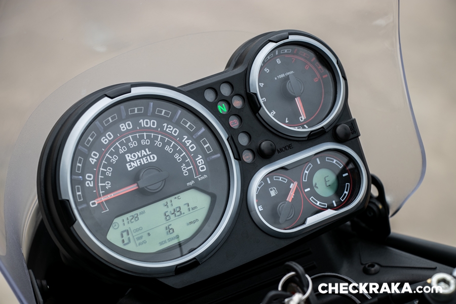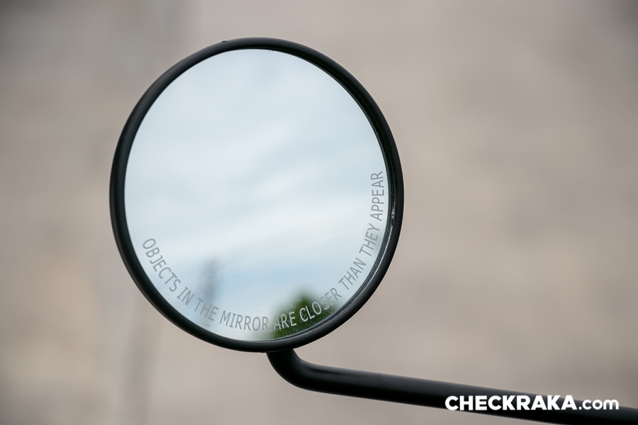 มาดูที่หน้าปัดมี 3 ช่องหลักได้แก่วัดความเร็ว วัดรอบเครื่องยนต์ และช่องล่างทางขวาบอกระดับน้ำมันและเข็มทิศทางมาให้ด้วย แอนด์บาร์ขนาดกว้างพอสมควร กระจกมองข้างยกสูงขึ้น แต่ก็ยังยื่นออกเล็กน้อยต้องคอยระวังกระจกมองข้างเวลามุดตอนรถติดๆ โดยเฉพาะความสูงที่ใกล้เคียงกับกระจกมองข้างรถปิคอัพเลยทีเดียวครับ