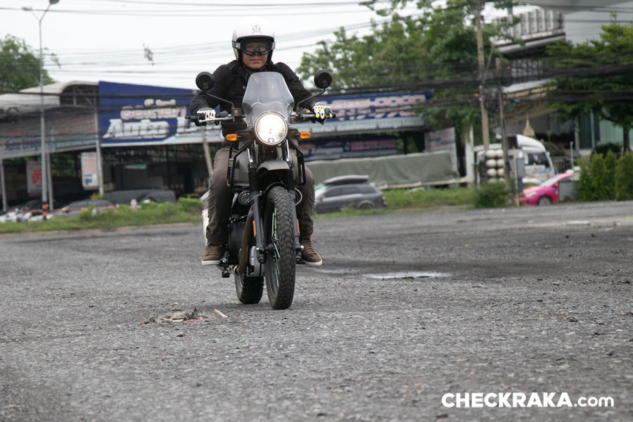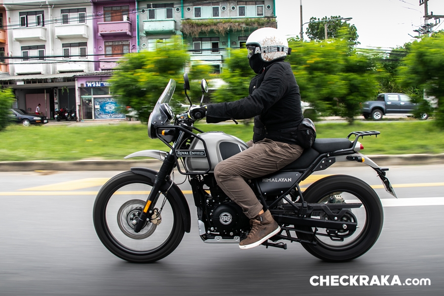 สำหรับ Royal Enfield Himalayan รถมอเตอร์ไซค์ที่มีช่วงล่างยกสูง ตอบสนองการใช้งานได้ดีทั้งในเมืองที่ผิวถนน "น่ากลัว" อย่างในเมืองหลวง สามารถขับขี่ผ่านสภาพถนนที่ "พัง" ได้อย่างสบาย ลุยน้ำท่วมขังได้สบายหายห่วง กำลังเครื่องยนต์ที่ไม่แรงมากเกินไปจึงทำให้ควบคุมคันเร่งได้ง่าย ไม่พุ่งพรวดพราดเกินไป ให้ความปลอดภัยในระดับหนึ่งบวกกับระบบเบรกที่ให้ ABS มาด้วย ในขณะที่จะขี่ทางฝุ่นก็สบาย กำลังเครื่องยนต์ดีในรอบต่ำรถน้ำหนักเบาไม่เหนื่อยเลี้ยวง่ายอีกด้วย