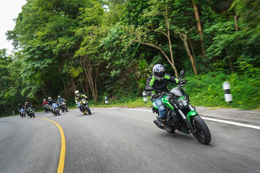 มาถึงพระเอกของทริป Dominar 400 เด่นด้วยไฟหน้าแบบ Full LED Headlamp เครื่องยนต์ DTSI ระบบหัวฉีด แบบ Dual Overhead Camshaft จุดระเบิดแบบ Triple Spark Plug ขนาด 373 ซีซี 39.4 แรงม้า 35 นิวตันเมตร ทำความเร็ว 0 ถึง 100 ก.ม. ในเวลา 7.1 วินาที เกียร์ 6 สปีด พร้อมด้วย Slipper Clutch โช๊คหน้า Upside Down ขนาด 43 มิลลิเมตร โช๊คหลังแบบ Mono Shock ระบบเบรกมาพร้อม ABS จาก Bosch แบบ Dual Channel ดิสก์เบรกคู่ขนาด 320 มิลลิเมตร ท่อไอเสียแบบคู่ สไตล์รถแข่ง เทคโนโลยีหน้าจอ LCD คู่ เฟรมแบบ Solid Stamp Perimeter Frame ราคาจำหน่ายพิเศษช่วงแนะนำ 115,000 บาท