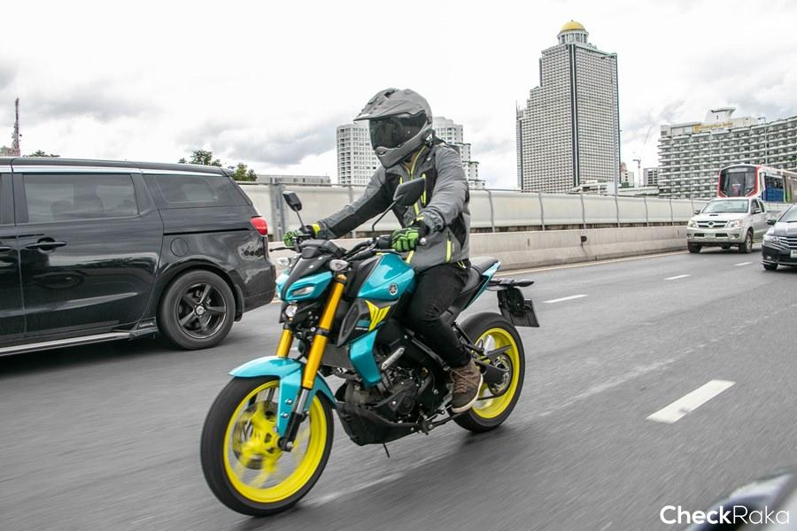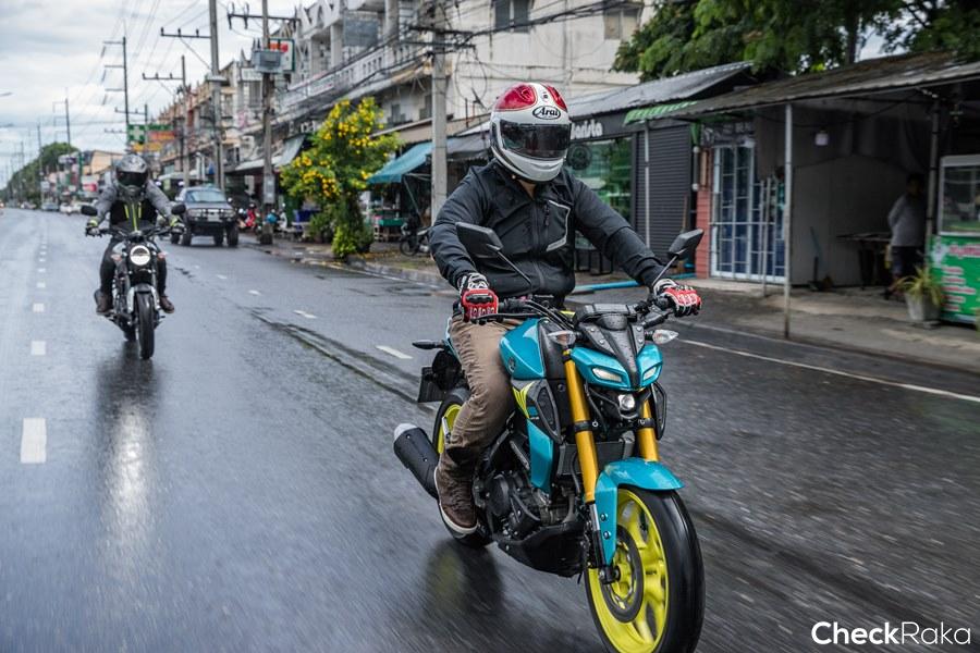 สำหรับแอดบอมที่ขี่ MT-15 พบว่าการขี่ทางไกลกับรถคลาส 155 ซีซี VVA ที่ใช้ความเร็วในการเดินทางสูงสุดอยู่ไม่เกิน 120 กม./ชม. ให้ความคล่องตัวอย่างมากเวลาเจอสภาพการจราจรหนาแน่น เช่น ช่วงในเมือง, ช่วงซ่อมถนนที่มีการลดช่องทางเดินรถ ฯลฯ การขี่ด้วยความเร็วเดินทาง 80-120 กม./ชม. ทำได้สบายๆ การเร่งแซงรถช้าได้พลังจากระบบวาล์วแปรผันเสริมดันผ่านได้ตามที่คิด ระบบเบรกชะลอรถรองรับความเร็วการเดินทางได้ดี ส่วนหนึ่งก็พยายามรักษาความเร็วให้เหมาะสมกับสภาพแวดล้อมในแต่ละเส้นทาง ตลอดระยะทางที่ขี่มา เพื่อความปลอดภัยสูงสุด อย่างไรก็ตามเมื่อมาถึงร้านดัลลัสฯ จุดนัดหมายแรก หลังพักเช็คอินจิบกาแฟและเปลี่ยนข้อมูลการขี่พร้อมเตรียมสลับรถเพื่อเดินทางไปร้านสหายคาเฟ่ จังหวัดลพบุรี อันเป็นจุดหมายต่อไปนั้น ฝนก็กระหน่ำลงมาทำให้การขี่อีก 42 กม. มีความท้าทายมากขึ้น ด้วยสภาพถนนที่เปียกลื่น
