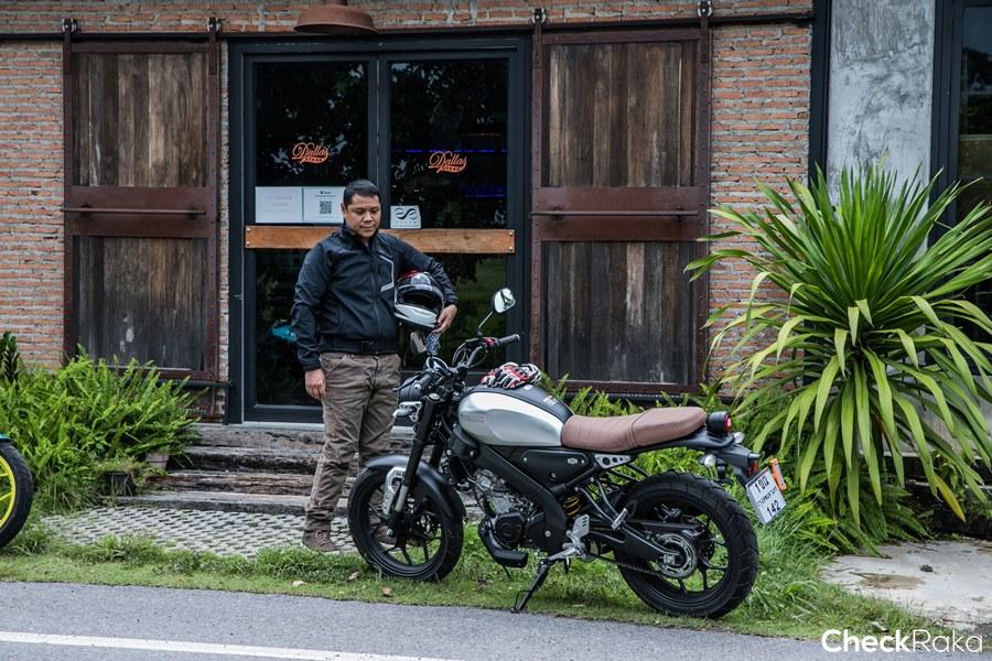 หลังจากเติมพลังด้วยกาแฟเลิศรส สนทนาถึงฟีลลิ่งการขี่ พอแยกความต่างเบื้องต้นระหว่างรถสองรุ่นนี้ได้ว่า ท่านั่งที่ขยับได้สะดวกกว่าต้องยกให้ XSR-155 ให้ความนุ่มนวลจากวัสดุเบาะและลุยถนนได้หลากหลายอย่างสบายใจ ด้วยยางแบบดูอัลเพอร์โพส การขี่ถนนต่างจังหวัด ด้วยเส้นทางสายรองทำให้เจอพื้นผิวถนนที่แตก เป็นลอน หลุม และซ่อมแซมบ่อย ในส่วนของ MT-15 ให้ซุ่มเสียงจากเครื่องยนต์ที่ดังเร้าใจ ตอบสนองคันเร่งได้กระฉับกระเฉงกว่า อย่างไรก็ตามคงต้องรอสรุปหลังสลับรถขี่ไปจนถึงร้านสหายคาเฟ่อีกครั้ง