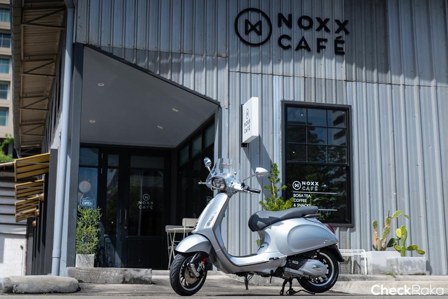 ไม่นานเราก็มาพักจิบเครื่องดื่มเย็นๆ ดื่มด่ำกับบรรยากาศดีๆ ของร้าน NOXX CAFE พร้อมได้สนทนาถึงเจ้าเวสป้ารุ่นนี้กับ แอดบอม จากเพจ Motorbike GURU Thailand by CheckRaka.com ทำให้ได้ทราบถึงความเป็นมา และรายละเอียดต่างๆ ที่น่าสนใจ ยิ่งทำให้ประทับใจในตัวรถมากยิ่งขึ้น นอกจากสไตล์ที่ดูดี พรีเมียม แตกต่างอย่างโดดเด่นแล้ว สมรรถนะจากขุมพลัง i-Get สูบเดี่ยว 4 จังหวะ 3 วาล์ว ที่ให้กำลัง 12.7 แรงม้า ที่ 8,000 รอบต่อนาที แรงบิดสูงสุด 12.5 นิวตันเมตรที่ 6,750 รอบต่อนาที ยังช่วยให้การขี่ในเมืองเร้าใจ และเพลิดเพลินไปกับกำลังที่เหลือเฟือในการเร่งแซงและเดินทางไปยังที่ต่างๆ