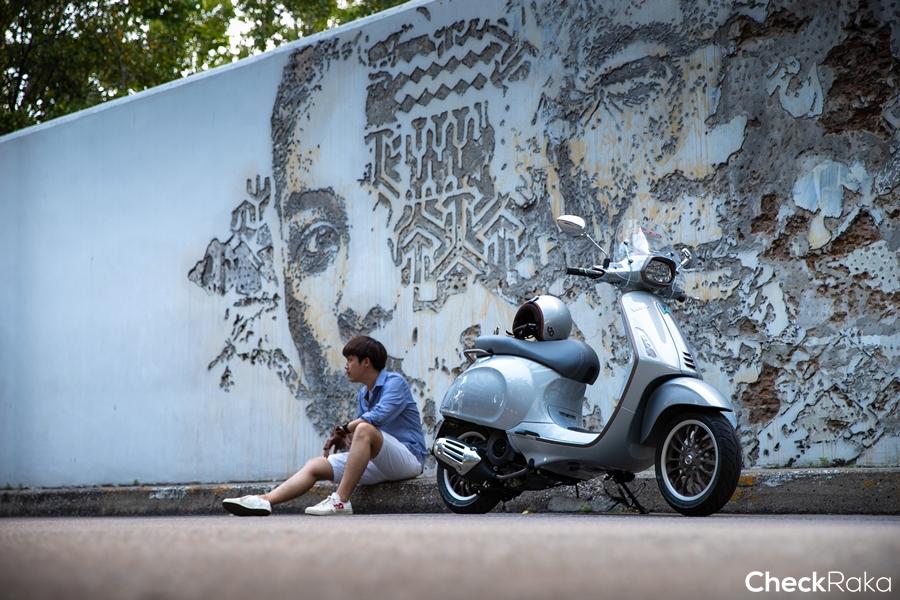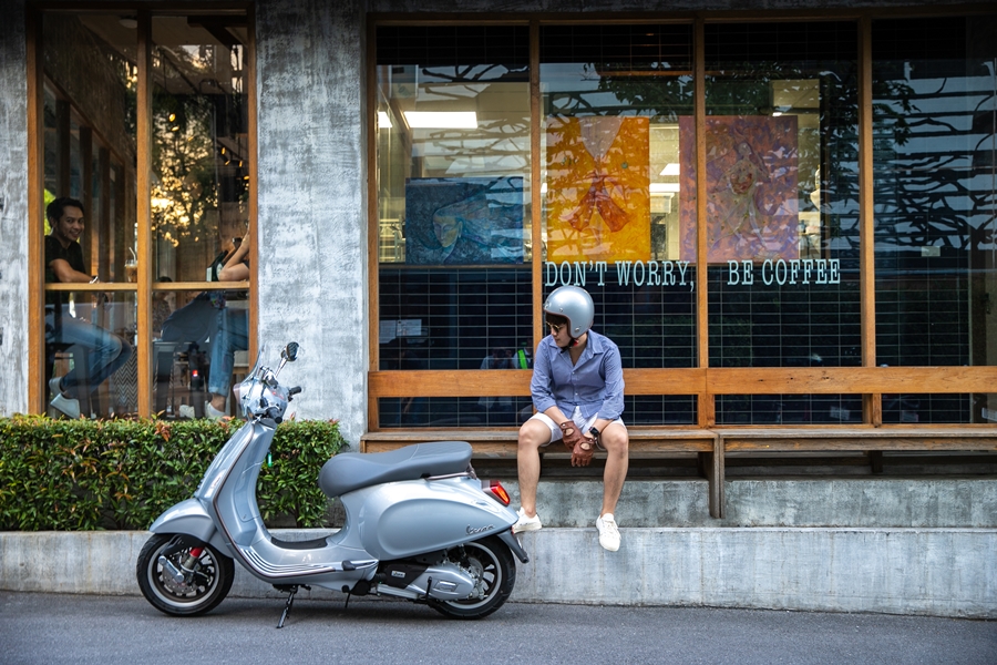 และเมื่อเรามีโอกาสได้นำเวสป้า "VESPA SPRINT 150 i-Get ABS 10TH ANNIVERSARY THAILAND LIMITED EDITION" มาขี่ เรื่องราวดีๆ ก็เริ่มขึ้น ภาพของการขี่ท่องเที่ยวไปตามสถานที่เก๋ๆ ในกรุงเทพฯ ก็ผุดเข้ามาในหัว เส้นทางแห่งความสุขของการขี่เวสป้า พร้อมแวะเช็คอิน ถ่ายรูปให้โลกรู้ผ่านโซเชียล เราเริ่มจากโชว์รูมที่สุขุมวิท 26 ในช่วงสาย เลาะเลี้ยวผ่านการจราจรที่ติดขัดอย่างคล่องแคล่ว จากสุขุมวิทมาถึงถนนพระราม ๙ ท่ามกลางสายตาเพื่อนร่วมทางหลายคู่ที่มักมองมาเวลาจอดติดสัญญาณไฟ ชวนให้คิดว่าเขาคงมองความเก๋ของเจ้า "VESPA SPRINT 150 i-Get ABS 10TH ANNIVERSARY THAILAND LIMITED EDITION" คันนี้ที่โดดเด่นไม่เหมือนใคร