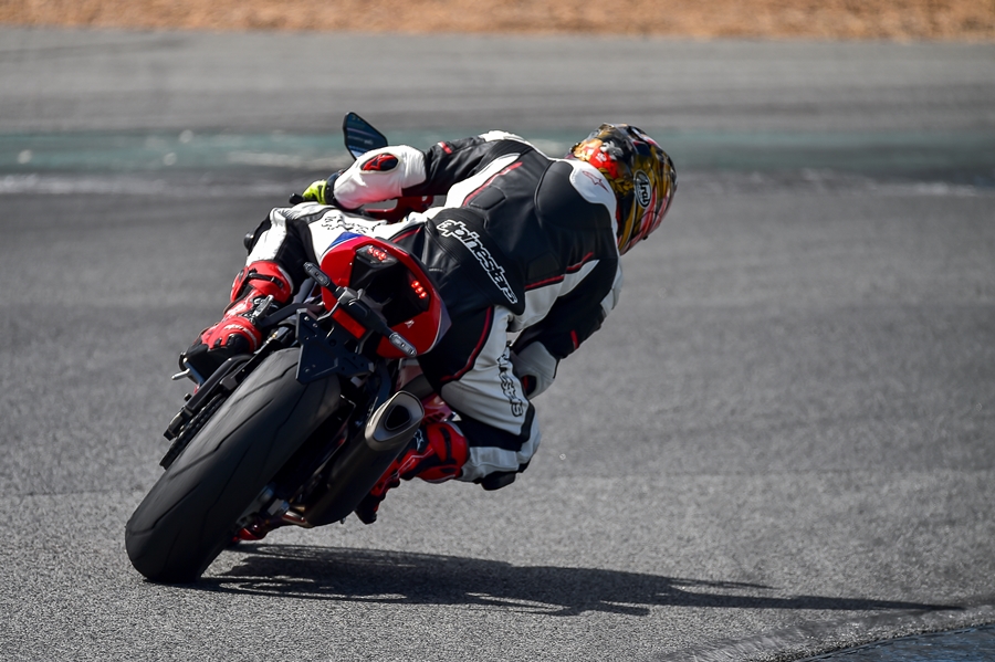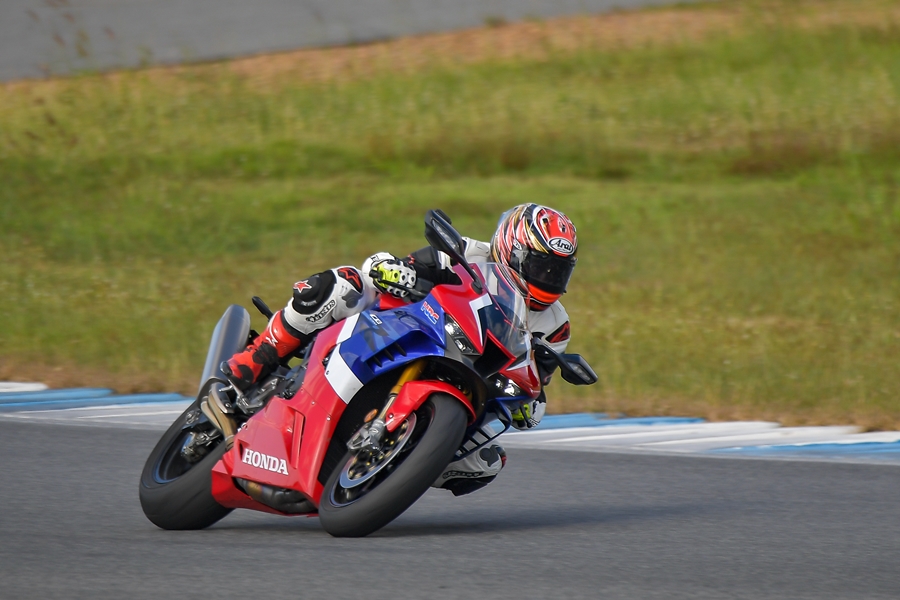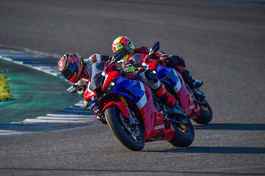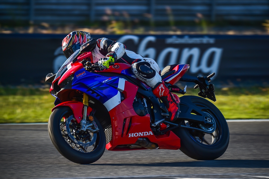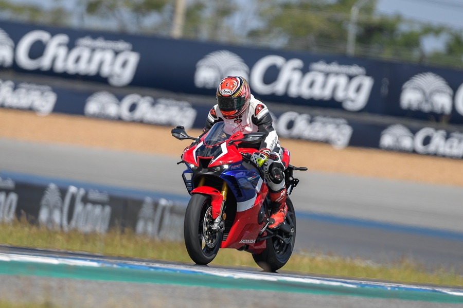 จากนั้นเข้าสู่ช่วงการทดสอบตามกลุ่มที่แบ่ง ผู้เขียนจากเพจ มอเตอร์ไบค์กูรู/เช็คราคา.คอม ได้ขี่ในกลุ่มสุดท้ายของภาคเช้า การขี่ทดสอบช่วงแรกเน้นความคุ้นเคยกับขุมพลังและมิติตัวรถ ด้วยเวลา 20 นาที ทำให้มีเวลาขี่จนเริ่มคุ้นชินและสนุกไปกับสมรรถนะตามจำนวนรอบที่มากขึ้น การขี่ซูเปอร์สปอร์ตไบค์คลาสสูงสุดระดับนี้ กลายเป็นเรื่องที่ง่ายขึ้นเพราะได้รับคำแนะนำเรื่องการใช้เกียร์ในโค้งต่างๆ จากโค้ชฟีม ที่ได้ลองตัวรถในสนามมาก่อน และระบบช่วยเหลือต่างๆ อันทันสมัยและฉลาดสุดๆ ทำให้การขี่มีความปลอดภัยมากยิ่งขึ้นไม่ว่าในสนามหรือบนถนน อย่างไรก็ตามค่าต่างๆ ผู้ใช้ก็สามารถปรับตั้งเองได้ในกรณีที่ต้องการให้รถตอบสนองการขี่ตามที่ต้องการ ส่วนตัวของผู้เขียนพอสรุปจากการขี่ทั้งสองช่วงเช้าและบ่ายได้เบื้องต้นว่า Honda CBR1000RR-R FIREBLADE SP เป็นบิ๊กไบค์ระดับซูเปอร์สปอร์ตที่ขี่และควบคุมง่ายเกินคาด ทำให้มั่นใจกับการเปิดคันเร่งและสนุกไปกับการทำความเร็ว ระบบเบรกที่ทำงานผสานกับวิงก์เลตใหม่ ตอบสนองได้ชัดเจนเมื่อต้องเบรกชะลอก่อนเข้าโค้ง หรือการทำความเร็วสูงในช่วงทางตรงยาวก็ให้ความมั่นคงในการทรงตัวที่ยอดเยี่ยม นอกจากนี้เสียงการทำงานของเครื่องยนต์ที่ส่งผ่านท่อไอเสีย Akrapovic ไทเทเนียม เร้าใจมากจนทำให้การขี่สนุกอย่างต่อเนื่องโดยเฉพาะการทำงานในรอบสูงที่ย่าน 10,500 - 11,000 รอบต่อนาที อันเป็นช่วงที่แตะกำลังสูงสุดของเครื่องยนต์