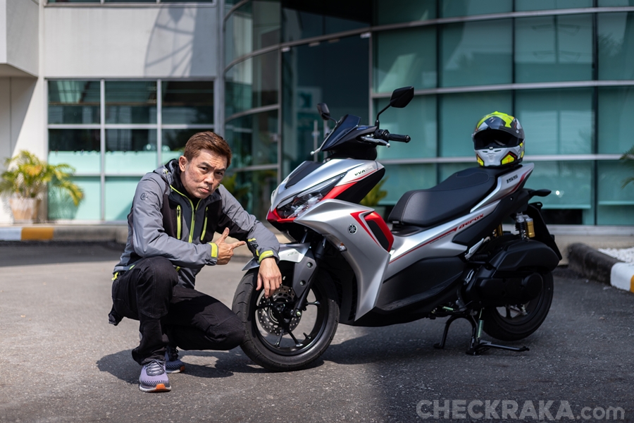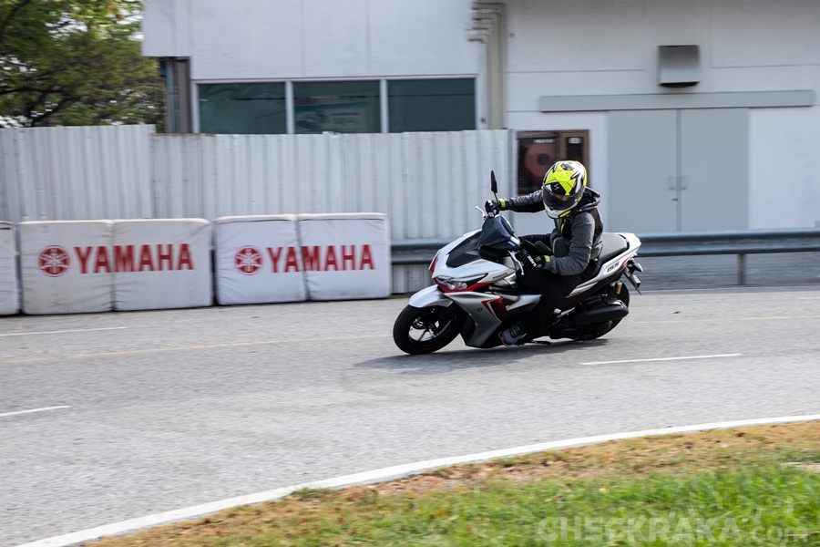 การขี่ทดสอบที่ศูนย์ฝึกอบรมขับขี่ปลอดภัยยามาฮ่าเริ่มกันตั้งแต่ช่วงเช้า โดยก่อนลงไปสัมผัสและขี่รถคันจริง ทาง ยามาฮ่า ได้มีการบรรยายข้อมูลโดยรวมทั้งหมดก่อน พอสรุปเบื้องต้นได้ว่า ยามาฮ่า ออลนิว แอร็อกซ์ มีการพัฒนาและปรับปรุงในหลายจุด เช่น ถังน้ำมันเชื้อเพลิงขยับจาก 4.6 ลิตร เป็น 5.5 ลิตร, เปลี่ยนตำแหน่งวางเท้าผู้ซ้อน,ไฟหน้า LED ให้กำลังสว่างมากขึ้น, เครื่องยนต์ปรับปรุงหลายจุดจนได้พลังและความประหยัดดีขึ้น, เพิ่มจุดชาร์จไฟในช่องเก็บของด้านหน้า, เพิ่มสวิตช์ควบคุมบนแฮนด์บาร์, เรือนไมล์ปรับให้เห็นชัดขึ้นในหลายมุม และที่สำคัญคือ การเพิ่มระบบ ยามาฮ่า มอเตอร์ไซเคิ่ล คอนเนค ที่เชื่อมต่อกับสมาร์ทโฟนผ่านแอปพลิเคชั่น Y-Connect แต่การทดสอบครั้งนี้เน้นกันเรื่องสมรรถนะตัวรถเป็นสำคัญดังนั้น มิติตัวรถที่เปลี่ยนแปลงอย่างค่าเทรล หรือความยาวที่ลดลง ประกอบกับขุมพลังที่ดีขึ้นย่อมส่งผลต่อการขับขี่อย่างแน่นอน