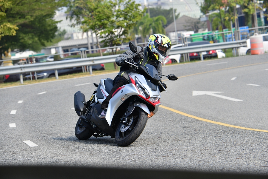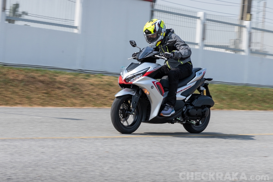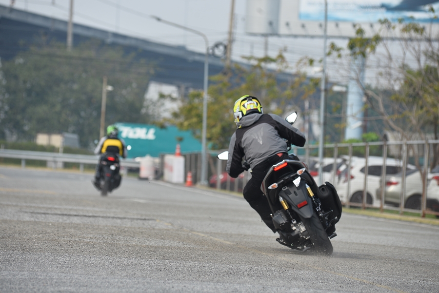 หลังจากขี่ผ่านไป 2-3 รอบสนาม พร้อมแวะเข้าจุดสสลาลอม พอสรุปได้ว่า รถตอบสนองการเร่งได้ทันใจ การไล่ความเร็วขึ้นไปในทางตรงทำได้ดีอย่างต่อเนื่องมีแรงบิดส่งไปจนถึงโค้งแบบต้องยกก่อน ส่วนหนึ่งเพราะเครื่องยนต์ปรับใหม่และมี VVA เสริมการทำงาน การเบาชะลอเบรกจากหน้าดิสก์หลังดรัมให้ความรู้สึกการตอบกลับที่ดี เติมน้ำหนักตอนกดง่าย แม้จะเป็นรถใหม่ยังไม่ได้รันอินก็ตา่ม การเข้าโค้งความเร็วรถไต้เกาะโค้งไปได้สนุก เทได้ลึกจนถึงขาตั้งกลาง ช่วงเข้ากรวยซ้าย-ขวาสลาลอม การเดินคันเร่งกับการบังคับเลี้ยวทำได้ง่ายเกินคาด รถมีความคล่องตัวสูง คิดแล้วเหมาะกับขี่ในเมืองและสนุกไปกับการขี่ท่องเที่ยวทางเขาหรือที่มีโค้งมากหน่อย
