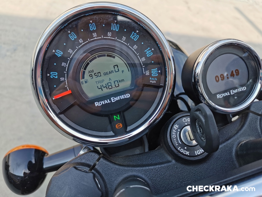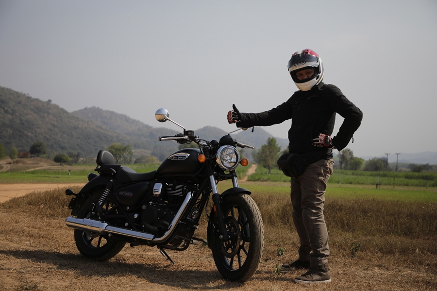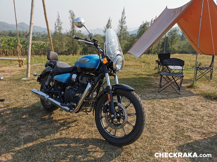 กอ่นอื่นต้องบอกว่าสำหรับ Royal enfield Meteor 350 พัฒนามาไกลมาก ดีขึ้นอย่างเห็นได้ชันเจนทั้งเรื่องความนุ่มนวล เครื่องยนต์ที่มีบาลานซ์ชาร์ฟ ลดอาการตัวสั่นไปได้เยอะ จนเรียกว่าเป็นปกติไม่แตกต่างจากรถสูบเดียวของค่ายเจ้าตลาด แต่ก็ยังมีจุดที่ค้างคาใจ เช่น สวิตช์สั่งงานบนแฮนด์ทั้งสองของ มีความหลวมและดูไม่ค่อนแข็งแรงนัก มาตรวัดฝั่งที่เป็นจอ LCD ต้องใช้เพื่อต่อเนวิเกเตอร์เท่านั้น หากไม่ต่อไว้ก็โชว์แค่นาฬิกาเฉย ๆ ควรจะมีการแสดงข้อมูลต่าง ๆ ของรถ เช่น วัดความร้อนเครื่องยนต์ แบตเตอรี่ ฯลฯ เป็นต้น และกำลังเครื่องยนต์ที่ดีในรอบต่ำถึงกลาง แต่เมื่อเลยความเร็ว 110 กม./ชม. ไปแล้ว จะไหลขึ้นแบบช้าจนไปแตะตัน 120 กม./ชม. เนื่องจากกล่องตัด (เพื่อให้ผ่านข้อกำหนดด้านการผลิต) และสุดท้ายถ้าได้ไฟหน้า LED ก็ยิ่งดี แม้จะขัดกับความเรโทรแต่ก็เป็นเทคโนโลยีใหม่ที่ประหยัดพลังงานได้ด้วย