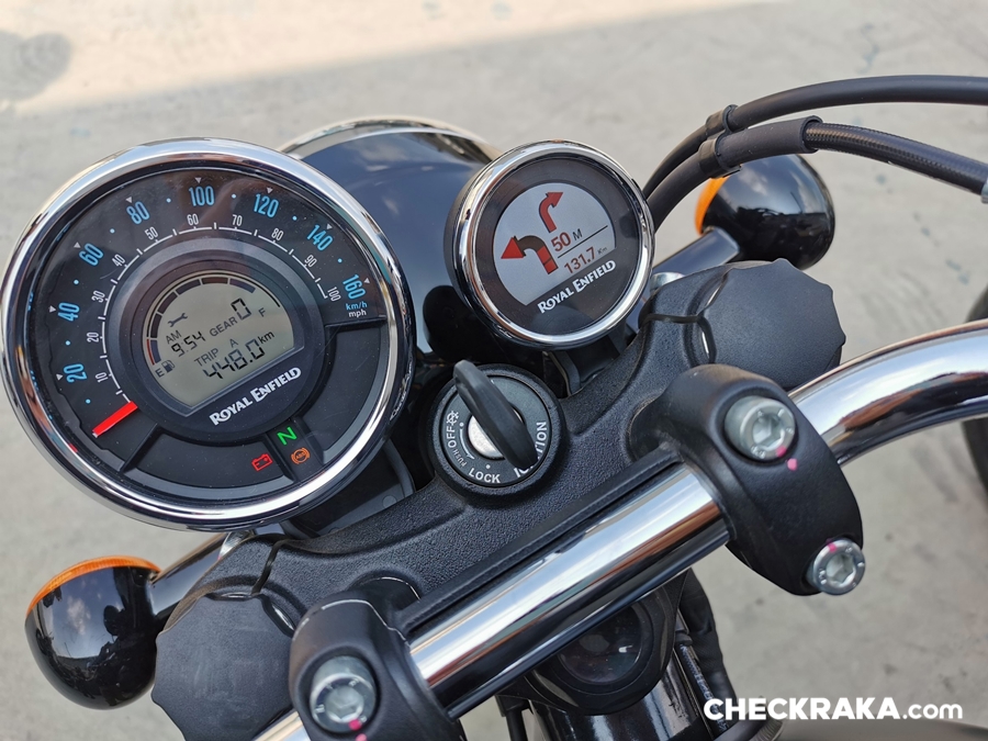 โรยัล เอ็นฟีลด์ เมทธีออร์ 350 มาพร้อมกับ Tripper ซึ่งเป็นนวัตกรรมการนำทางที่พัฒนาใหม่ โดยจะประสานการทำงานระหว่าง Google Maps และแอปพลิเคชันของโรยัล เอ็นฟีลด์ ด้วยการเชื่อมต่อกับมอเตอร์ไซค์ด้วยสัญญาณบลูทูธ สามารถระบุทิศทางในการเดินทางด้วยการแสดงผลบนจอของตัวเองที่แยกออกมา เพียบพร้อมด้วยฟังก์ชันการใช้งานในรูปแบบต่างๆในแอปพลิเคชันของโรยัล เอ็นฟีลด์ และพิเศษกับช่องชาร์จ USB ตรงแฮนด์ฝั่งซ้าย .jpg)