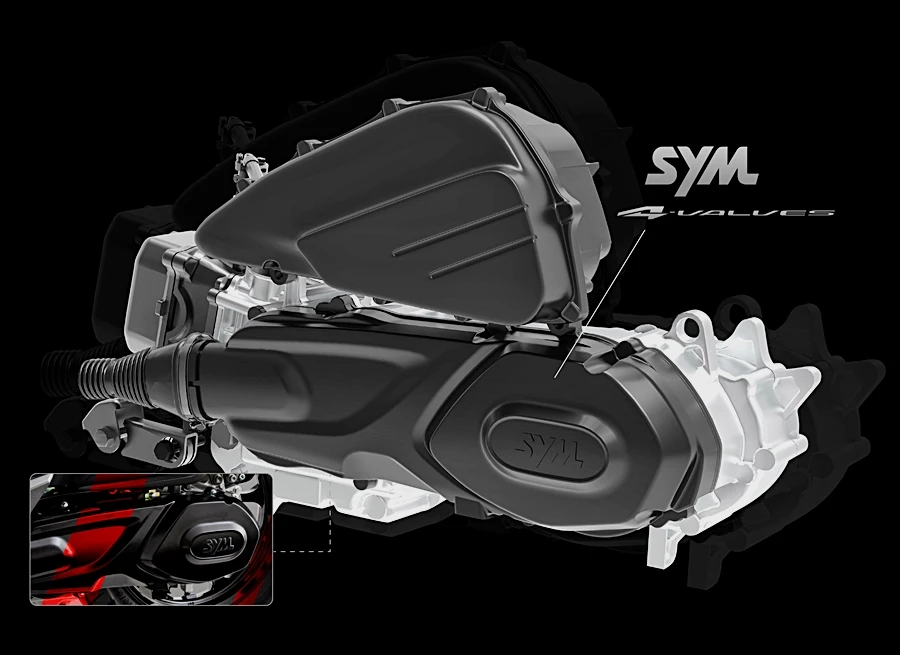 สมรรถนะเกินตัว เครื่องยนต์ใหม่ล่าสุด 1 สูบ 4 วาล์ว เทคโนโลยีจาก SYM แบรนด์ระดับโลกประสบการณ์กว่า 60 ปี เพิ่มสมรรถนะทั้งพละกำลัง แรงบิด และอัตราเร่งที่ดีขึ้นส่งผลให้รอบต้นมาเร็วขึ้น รอบออกตัวดีขึ้นกว่าเดิม 28% และดิกส์เบรกหน้าขนาด 260 มิลลิเมตร หลัง 220 มิลลิเมตร พร้อมระบบ CBS (combined braking system) ช่วยกระจายแรงเบรก โช้กหลังสปริงคู่ปรับพรีโหลดได้ 3 ระดับ