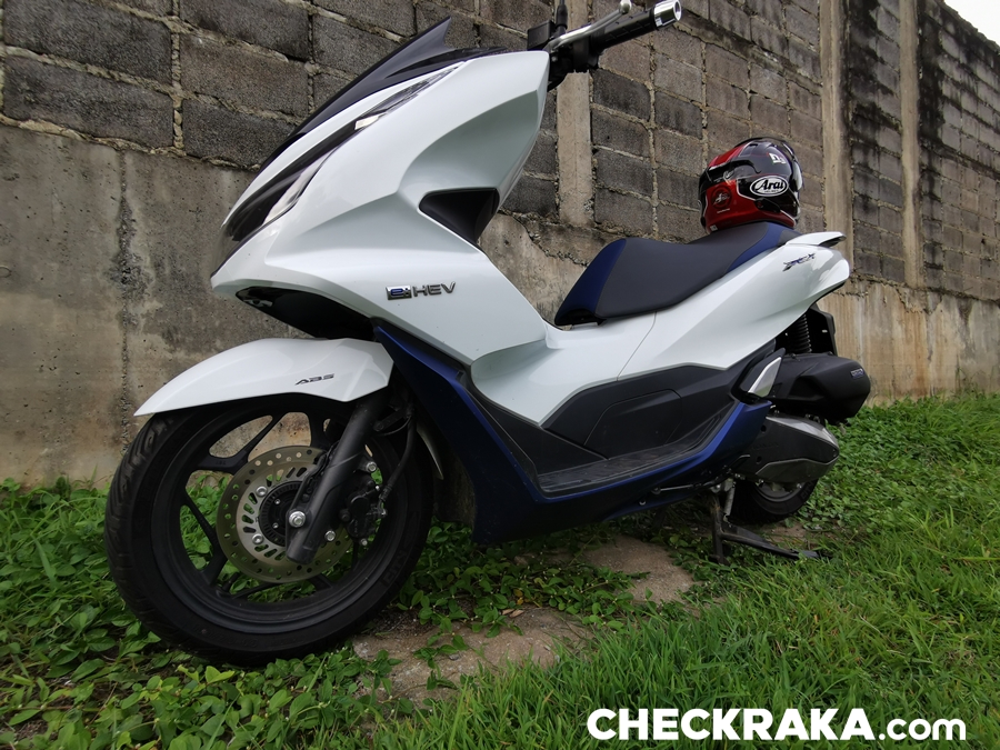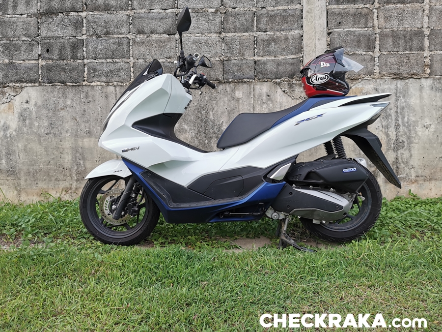 All New PCX 160 e:HEV เครื่องยนต์ขนาด 157 ซีซี ทำงานผสานกับมอเตอร์ AC ที่ใช้แบตเตอรี่แบบ ลิเธียม-ไอออน นับเป็นสกู๊ตเตอร์ไฮบริดที่มีทั้งการชาร์จและช่วยเติมพลังในการขับเคลื่อนอย่างเหมาะสม โดยมีโหมด D และ S ให้เลือกใช้ การเก็บแบตเตอรี่ใช้พื้นที่ใต้เบาะครึ่งหนึ่งสำหรับวางแบตเตอรี่ลิเธียม-ไอออน ในแง่การใช้งานจริงจะส่งผลมากน้อยเพียงใด รวมทั้งสมรรถนะที่เอามาวิ่งแบบในชีวิตประจำวันงานนี้ทีมงาน MotorBikeGuru /Checkraka.com นำมาลองให้ได้ทราบกัน