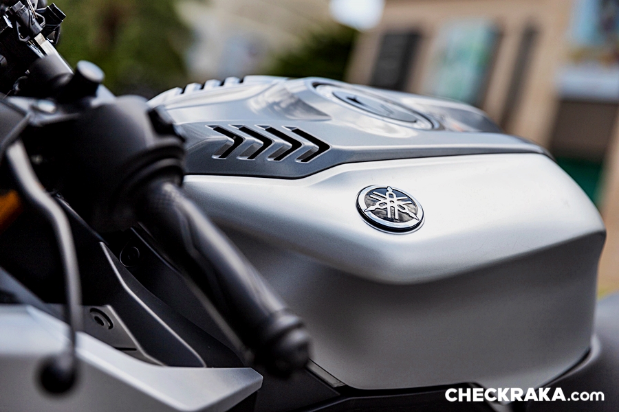 ไฟหน้า Full LED ช่องดักลมตรงกลางและดีไซน์สปอร์ต DNA จาก Yamaha YFZ-R1 ถังน้ำมันตกแต่งด้วยช่องอากาศ ชิวหน้าทรงลู่ลม เวลาหมอบสามารถมองทะลุได้ ไฟท้าย LED ไฟเลี้ยวแบบธรรมดา พร้อมสวิตช์ไฟฉุกเฉิน ส่วนเบาะนั่งคนขับเว้าลึกมีขนาดเล็กการนั่งจะเทมาด้านหน้าส่วนเบาะคนซ้อนยกสูงสไตล์บิ๊กไบค์ การขึ้นซ้อนต้องปีนขึ้นและมีมือจับด้านข้างแนบกับตัวเบาะ ข้อดีของเบาะเล่นระดับนี้คือช่วยลดการ "หัวโขก" ของคนขับขี่และคนซ้อนได้ดีระดับหนึ่ง