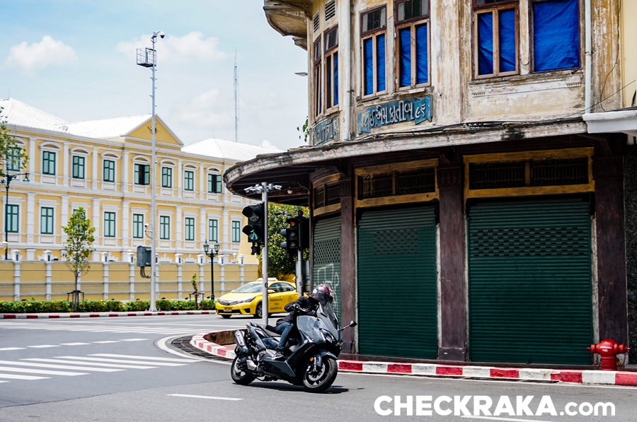 การขี่ทดสอบเป็นการใช้งานในเมืองแบบร้อยเปอร์เซนต์ เสมือนการใช้งานในชีวิตประจำวัน เริ่มจากวันแรกรับรถจาก ยามาฮ่า ไรเดอร์ส คลับ ก่อนไปก็ได้รับการอธิบายการใช้งานเป็นอย่างดีจากทีมขาย ผู้เขียนใช้เวลาไม่นานก็คุ้นเคยกับตัวรถ ส่วนตัวก็ขี่สกู๊ตเตอร์ยามาฮ่าอยู่แล้ว สัมผัสแรกที่ประทับใจคือ แรงบิด และเสียงการทำงานของเครื่องยนต์ ส่วนนี้่คือความแตกต่างจากสกู๊ตเตอร์ขนาด 300 ซีซี ที่คุ้นเคยอย่างสิ้นเชิง เสียงการทำงานของเครื่องยนต์ขนาด 560 ซีซี 2 สูบ ผ่านระบบท่อไอเสียเดิมทำไมเร้าใจได้ขนาดนี้ แม้ขี่ด้วยความเร็วต่ำ ไพเราะไม่หนวกหู พร้อมกระตุ้นให้เร่งความเร็วขึ้นไปอยู่ตลอด นอกจากนี้แรงบิดที่มารอก็รู้ถึงพลังที่พร้อมปลดปล่อย และเมื่อเปิดคันเร่งหวังให้พุ่งทะยานไปข้างหน้าก็แปลกใจการความสมูธแบบค่อยเป็นค่อยไป ทำให้ง่ายต่อการควบคุม การโยกบังคับเลี้ยวผ่านรถยนต์บนถนนระหว่างเลน ทำได้อย่างคล่องตัวเช่นเดียวกับเบรกที่กดพร้อมกันหน้าหลังแล้วรู้สึกได้ถึงพลังหน่วงชะลอ ให้ความละเอียดในการเพิ่มน้ำหนักการบีบก้ามเบรกดีไม่น้อย การเบรกหลังที่ความเร็วต่ำเพื่อแต่งรถขณะผ่านช่องทางแคบ พบว่าตัวรถให้สมดุลที่ดีมาก ง่ายต่อกรทรงตัวหยุดนิ่งได้อย่างประทับใจ ง่ายกว่า XMAX ด้วยซ้ำ ติดแค่กระจกมองข้างซ้าย-ขวาที่กินพื้นที่ความกว้างพอสมควร การขี่เข้าเมืองชั้นในเส้นสีลม และใกล้เคียงกลับให้ความสะดวกสบาย แม้การจอด ขยับรถก็ไม่ได้รู้สึกว่าเป็นภาระเหมือนบิ๊กไบค์ขนาด 200 กก. ขึ้นไป นอกจากนี้พื้นที่้ใต้เบาะก็ให้ความอเนกประสงค์เหนือความคาดหมาย แม้ดูไม่กว้างแต่ได้ความลึกเก็บของได้มากพอสมควร และไม่โดนความร้อนจากเครื่องยนต์เข้ามารบกวนเหมือนสกู๊ตเตอร์ทั่วไป ระบบไฟส่องสว่างเวลาขี่ยามค่ำคืนชัดเจนและนุ่มนวลตา เสียงแตรเป็นจุดที่ชอบเพราะเสียงฟังแล้วพรีเมียมจริงๆ ปกติแตรติดรถสกู๊ตเตอร์ฟังแล้วมักไม่ชอบเพราะทำหน้าที่แค่ดังอย่างเดียว นับเป็นรายละเอียดที่แตกต่างจริงๆ ขี่อยู่ 2 วัน สลับไปใช้โหมดสปอร์ตบ้างแต่ก็ไม่นานเพราะเส้นทางและการขี่ในเมืองไม่เหมาะเท่าไหร่ ไฮไลท์ของการทดสอบขี่มาอยู่ในวันสุดท้ายที่ต้องขี่ตากฝนค่อนข้างหนักและวิ่งไกล ผู้เขียนเลือกที่จะไม่หยุด อาศัยการปรับชิลด์หน้าขึ้นมาช่วยลดการปะทะของเม็ดฝน และเมื่อร่างกายเริ่มหนาวสั่นกับความเย็นก็ได้ลองเปิดฮีทกริ๊ปช่วยลงตัวที่ระดับสองจากสาม ส่วนที่เบาะนั่งก็ปรับไว้ที่สองในสามเช่นกัน นับเป็นฟีเจอร์ที่อยู่เหนือความสนใจในการใช้งาน เพราะคิดว่าเหมาะกับเ