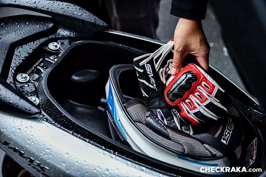 Yamaha NMAX Connected มีสิ่งอำนวยความสะดวกที่เพียงต่อการใช้งาน ช่องเก็บของอเนกประสงค์และช่องใส่ของพร้อมฝาปิดที่แผงคอ ช่องชาร์จไฟ DC12V สำหรับสมาร์ทโฟน สามารถเก็บหมวกกันน็อคแบบเต็มใบได้ที่ใต้เบาะ
