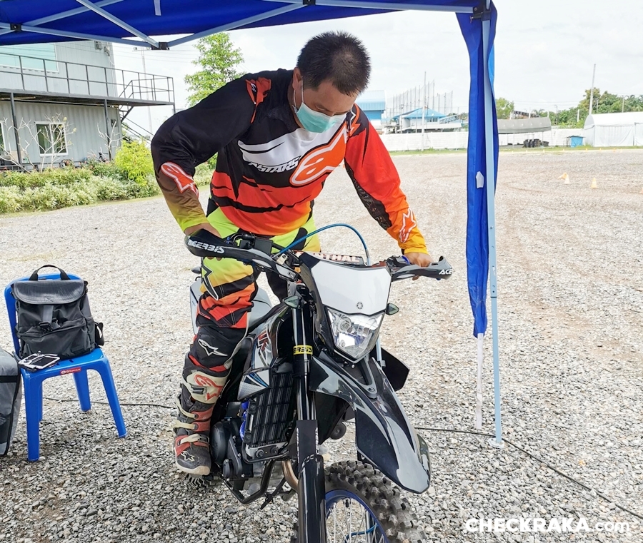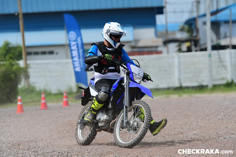 สำหรับทีมงานเช็คราคาแม้ไม่ได้ขับรถเอ็นดูโร่บนทางฝุ่นบ่อยนัก แ่ก็สามารถขับขี่เจ้า WR155R ในสนามแห่งนี้ได้อย่างสบาย ซึ่งทางครูฝึกได้ให้ลองขับในรูปแบบวงกลมซ้ายสลับขวาและขับขี่เป็นเลข 8 เพราะให้เกิดความคุ้มเคยกับท่านั่งและพื้นผิวที่ลื่น