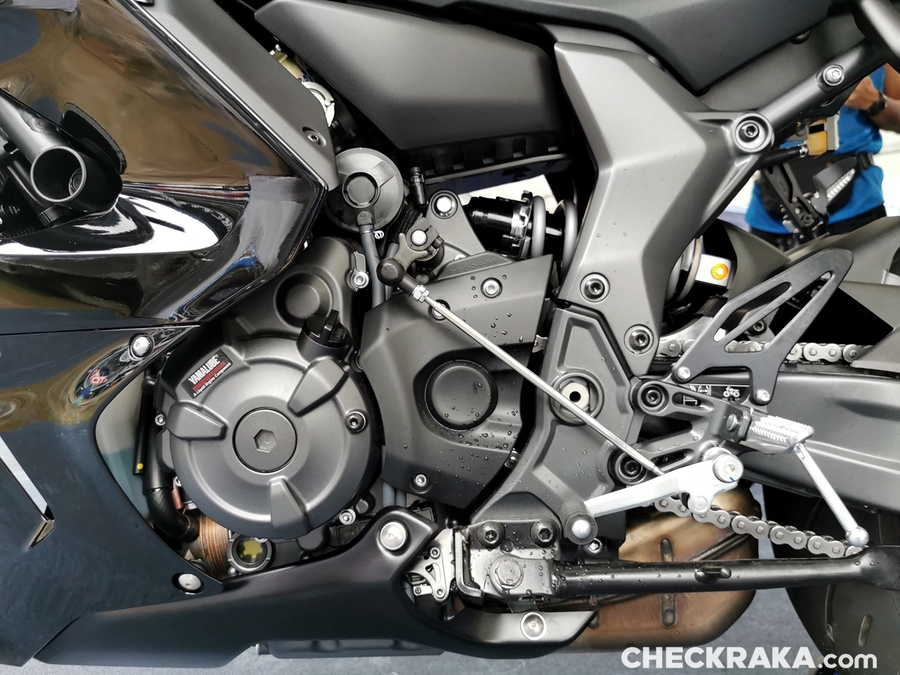 ไฮไลท์ของ YZF-R7 อยู่ที่ขุมพลังเครื่องยนต์แบบ CP2 ขนาด 689 ซีซี กำลังสูงสุด 73.4 PS ที่ 8,750 รอบต่อนาที แรงบิดสูงสุด 67 นิวตันเมตร ที่ 6,500 รอบต่อนาที จากรอบเห็นได้ว่าไม่สูงมากเพื่อรองรับการขี่บนถนน แต่ก็ให้ Riding Position ที่ซิ่งพอขี่ได้ในแทร็คได้สนุก ด้านแฟริ่งออกแบบตามหลักอากาศพลศาสตร์ สอดรับให้มีความกระชับเว้นให้ขาหนีบเฟรมได้กลมกลืนไปกับตัวรถ นับเป็นอาร์ซีรี่ย์ที่สลิมเพรียวที่สุดของตระกูล พร้อมระบบ ASSIST & SLIPPER CLUTCH เพื่อความปลอดภัยในจังหวะรวบเกียร์ลง และมีออปชันสำหรับควิกชิฟต์ (อัพอย่างเดียว) ที่เดินสายไฟมารอพร้อมเสียบ ใครอยากได้ก็สั่งซื้อแยกเพิ่มได้