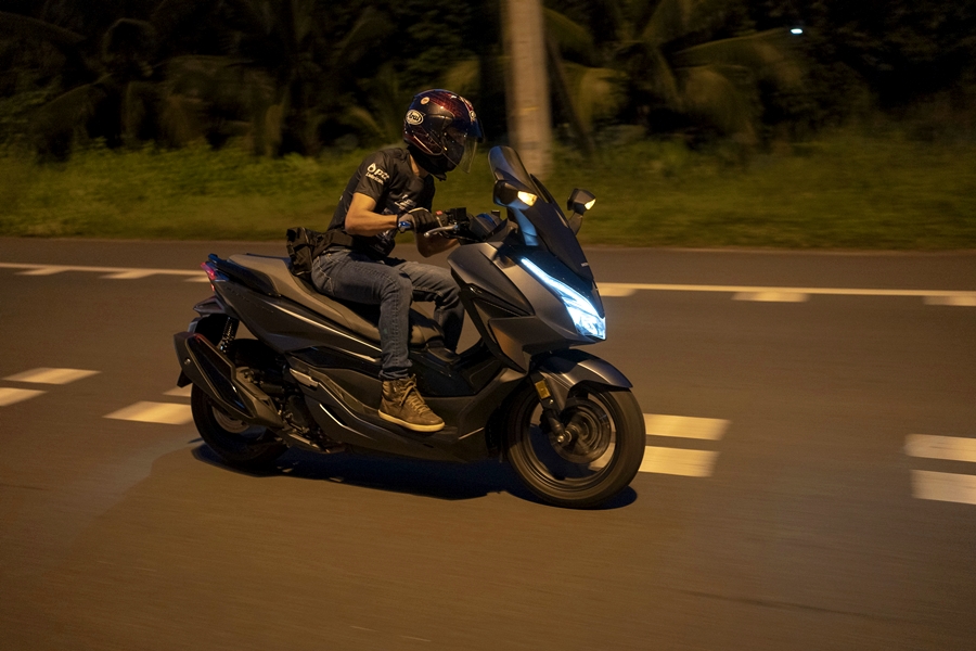 ในกลุ่มสกู๊ตเตอร์คลาส 200 ซีซี ขึ้นไป คนขี่มักเลือกด้วยเหตุผลอื่นประกอบนอกจากการใช้งานทั่วไป ส่วนใหญ่ที่เห็นคือ ตอบโจทย์ไลฟสไตล์นักบิดที่ชอบเดินทางท่องเที่ยวทางไกล ที่ต้องการรถมีกำลัง แรงบิดดีพอในการเร่งแซงและทำเวลา ตลอดจนให้พื่นที่จัดเก็บสัมภาระได้มากกว่ารถมอเตอร์ไซค์มีเกียร์ทั่วไป ซึ่งปี 2021 ต้องยกให้กับการอัพเดทครั้งใหม่ของ ฮอนด้า ฟอร์ซ่า ด้วยการปรับเปลี่ยนขุมพลังเครื่องยนต์และดีไซน์ตัวรถ ฟอร์ซ่า 350 สกู๊ตเตอร์ที่ดูพรีเมียมตั้งแต่แรกเห็นส่วนตัวก็ชอบการออกแบบตั้งแต่รุ่น 300 ทั้งชิลดไฟฟ้า และกระจกมองข้างแบบพับได้ ในรุ่น 350 ใหม่ ได้มีโอกาสนำมาขี่ทางไกลกรุงเทพฯ- บุรีรัมย์ ไปกลับระยะทางกว่า 900 กม. หลังเคยขี่ทดสอบช่วงสั้นๆ ในกรุงเทพฯ แต่การขี่ทางไกลครั้งนี้ที่เผชิญฝนและความมึดทำให้รู้ว่า ฟอร์ซ่า 350 เป็นสกู๊ตเตอร์ที่ตอบโจทย์ได้มากกว่าที่คิด ในแบบที่รุ่นอื่นในคลาสให้ไม่ได้ เมื่อเจอฝนหรือแมลงบินระหว่างการเดินทางชิลด์ไฟฟ้าที่ปรับขึ้นลงได้ช่วยบรรเทาการปะทะไปได้เยอะ ขุมพลัง 350 ซีซี ให้อัตราเร่งและยืนพื้นทำความเร็วได้ดีจนน่าทึ่ง ตลอดการเดินทางตัวรถไม่มีปัญหาอะไรกวนใจทั้งสิ้นแสดงให้เห็นถึงความแน่นอนในการทำงานของระบบต่างๆ ถามว่านอกจากรุ่นนี้ไม่มีอะไรเทียบเคียงความชอบได้เลยเหรอ Tmax560 คืออีกความชอบที่ว่า และที่มากกว่าคือ ฮีทกริ๊ปกับวอร์มซีทช่วยให้อุ่นเวลาขี่ตากฝนยาวๆ หรือขี่เที่ยวดอยตอนหน้าหนาว แต่ด้วยราคาและหน้าจอที่จืดชืดไปหน่อยทำให้ต้องมองข้าม อีกอย่างมันเปิดตัวมาตั้งแต่ปลายปี 2019 ซึ่งรุ่นล่าสุดที่เปิดไปเมื่อปลายปีก่อน กำลังเข้ามาทำตลาดในบ้านเรา คงได้ทดสอบกันในปีนี้ สรุป ฟอร์ซ่า 350 โดนใจก็ที่ราคา 173,500 บาท ได้สกู๊ตเตอร์ดีพร้อมสำหรับทุกการใช้งานและเดินทางท่องเที่ยวแบบคันเดียวจบ