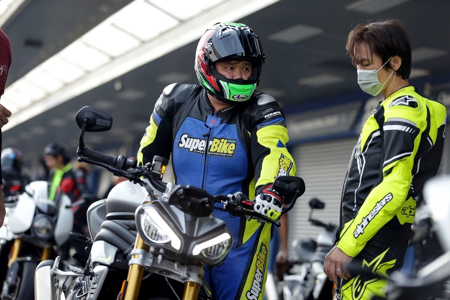 หลังจากเปิดตัวไปไม่นานทาง ไทรอัมพ์ มอเตอร์ไซเคิลส์ ก็จัดให้สื่อมวลชนได้สัมผัสสมรรถนะจริงของตัวรถทั้ง 2 รุ่น แบบเต็มที่ในแทร็คของสนามช้างฯ โดยการทดสอบแบ่งออกเป็น 3 เชสชั่น และแบ่งกลุ่มทดสอบออกเป็น 3 กลุ่มตามจำนวนสื่อมวลชนและอินฟลูเอนเซอร์ที่ร่วมขี่ในครั้งนี้ ผู้เขียนอยู่ในกลุ่ม 2 หลังฟังบรรยายรายละเอียดตัวรถในช่วงเช้าของทั้ง สปีด ทริปเปิล 1200 อาร์อาร์ และสปีด ทริปเปิล 1200 อาร์เอส ซึ่งแม้มีพิ้นฐานเครื่องยนต์ เฟรม และโครงสร้างช่วงล่างที่เหมือนกัน แต่ก็มีความแตกต่างกันในแง่รูปลักษณ์ ประเภทรถ และรายละเอียดพาร์ตมากพอสมควร รวมไปถึงราคาที่ต่างกัน 100,000 บาท