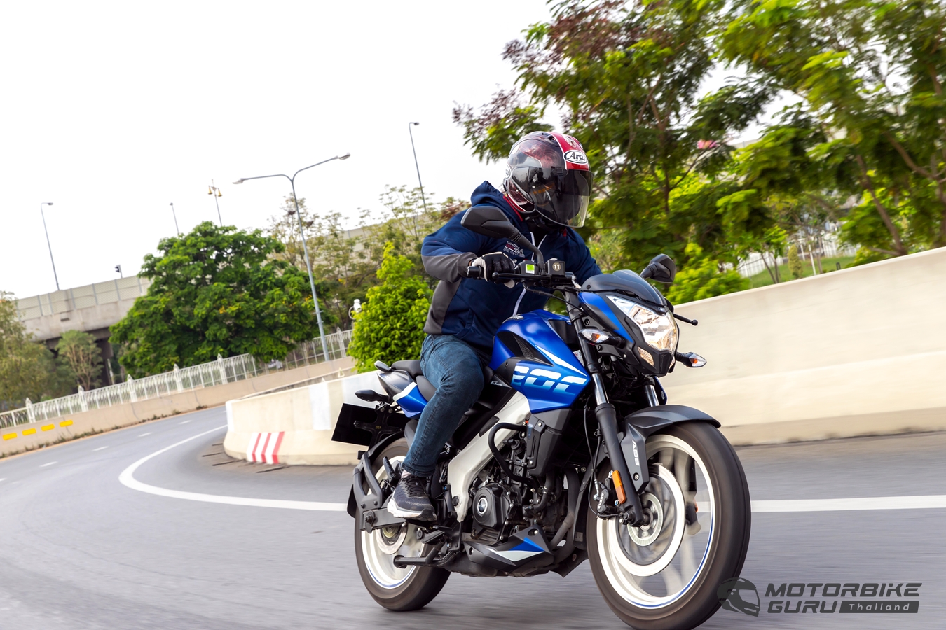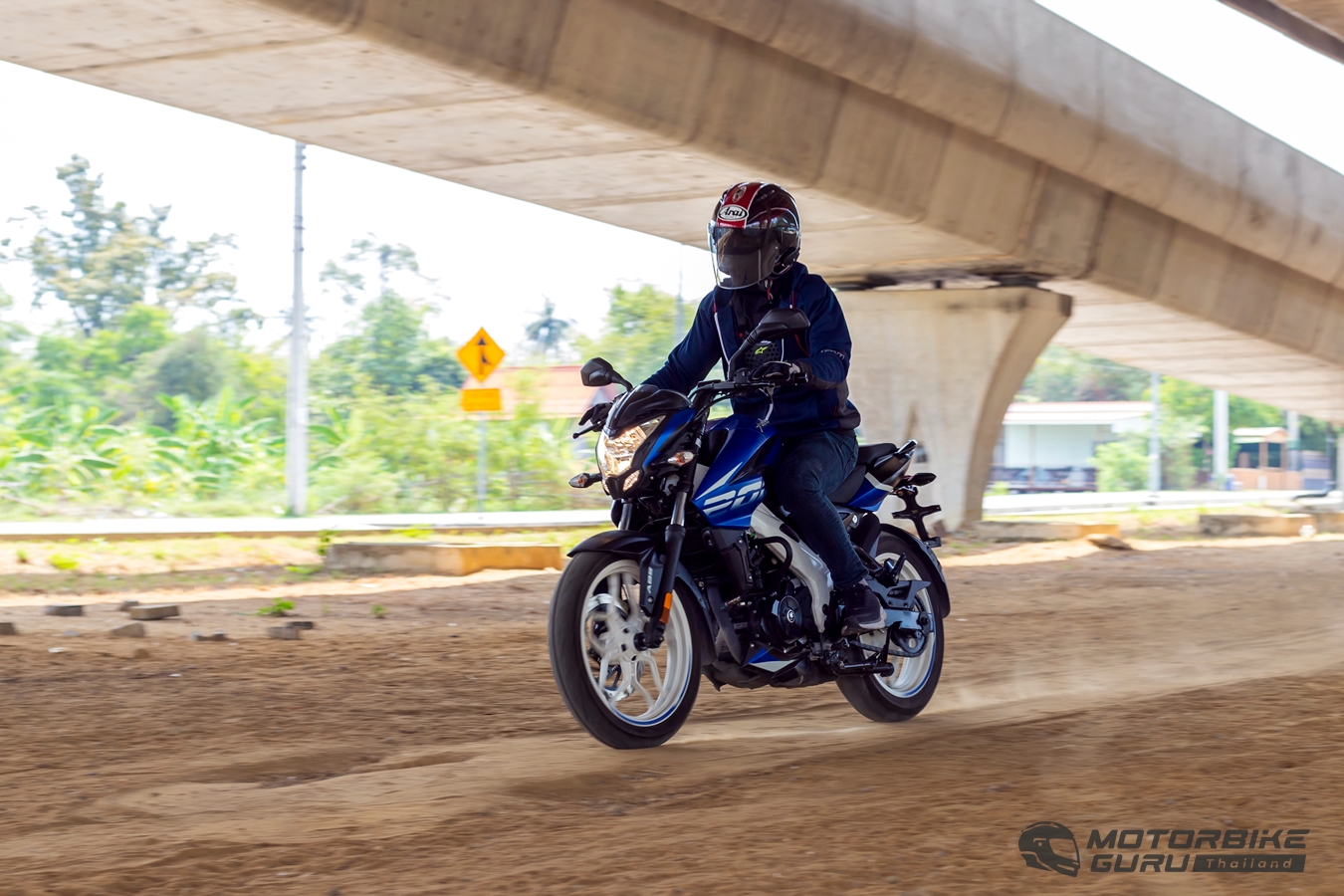 วันที่สองของการขี่ Bajaj Pulsar NS200 ผู้เขียนเริ่มต้นจากนอร์ธปาร์คไปสะพานเจษฎาบดินทร์ จังหวัดนนทบุรี ได้สัมผัสทั้งเส้นทางชุมชนและถนนเปิดโล่ง ตลอดจนบนสะพานสูงทางยาว และทางดินที่ให้อารมณ์ขี่สนุกแบบเอ็กซ์ตรีมเล็กๆ การขี่ไปตามเส้นทางลัดย่อยผ่านหมู่บ้าน ชุมชน เพื่อไปออกถนนติวานนท์ สนามบินน้ำ มุ่งสู่สะพานเจษฎาฯ เสมือนการใช้ขี่ใช้งานจริงในชีวิตประจำวัน ผู้เขียนคุ้นกับรถมากขึ้นเรื่อยๆ จังหวะการเปลี่ยนเกียร์ที่รู้สึกเหมาะสมควรเป็นรอบกลางๆ มากกว่าลากยาวเกิน 6,000 รอบ ซึ่งแรงบิดเริ่มไม่มี รถเปลี่ยนเกียร์ง่าย โยกย้ายเปลี่ยนเลนและไลน์สะดวก มีจังหวะเบรกฉุกเฉินให้ได้กดเต็มๆ จน ABS ทำงาน ตัวรถรักษาอาการดีและเบรกจนหยุดนิ่งทันท่วงที คุมง่าย ช่วงขี่ขึ้นสะพานตัวรถทรงตัวได้นิ่งดีทำให้ขี่มั่นใจจริงๆ จังหวะผ่านลอนถนนปั๊มเนินช่วงล่างเฟิร์มรับอยู่สบายๆ การเร่งแซงรถช้า ก็มีแรงบิดพอให้เรียกใช้ได้ทันใจ อาจไม่ถึงกับดึงกระชากแต่ก็แรงพอให้กะจังหวะแซงได้อย่างปลอดภัย การเข้าโค้งความเร็วก็ลีนไปกับรถได้อย่างมั่นใจ ไม่มีจังหวะสลิปแม้แต่นิดให้แก้ พิเศษกับการขี่บนทางดินที่แทร็คชันน้อยมาก เป็นช่วงที่เน้นการขี่แบบสนุกสนานในพื้นที่เฉพาะ การออกตัว ทำความเร็ว เบรกสไลด์ Pulsar NS200 ตอบสนองได้สนุกเหนือความคาดหมาย เป็นรถที่ใช้งานได้รอบด้านหลากหลายจริงๆ สรุปด้านสมรรถนะนับว่าเพียงพอกับการใช้งานแบบครอบคลุมจบในคันเดียว ขี่ไปทำงาน เที่ยว หรือทำกิจกรรมมันๆ ได้หมด ที่สำคัญคือ ราคาน่าคบหามากด้วยคลาส 200 ซีซี เทียบกับรุ่นอื่นๆ ส่วนใหญ่มัก 150 ซีซี แถมจ่ายค่าตัวน้อยกว่า และยังมีโปรโมชั่นส่วนลดพิเศษอีกต่างหาก ผู้เขียนมองว่าคุ้มค่ามาก