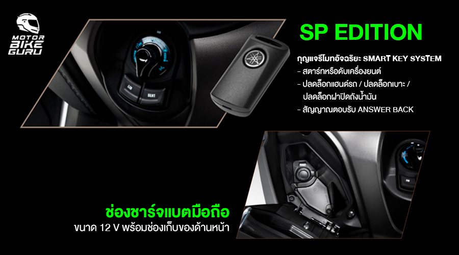 ดีไซน์สปอร์ตดุดัน ต้นฉบับความเท่ของตระกูล MAX สว่างขึ้นชัดเจนกว่าเดิม เพิ่มวิสัยทัศน์ในการขับขี่ มาพร้อมกับกุญแจรีโมทอัจฉริยะ SMART KEY SYSTEM (SP EDITION) สตาร์ทหรือดับเครื่องยนต์, ปลดล็อกแฮนด์รถ / ปลดล็อกเบาะ / ปลดล็อกฝาปิดถังน้ำมัน, สัญญาณตอบรับ ANSWER BACK