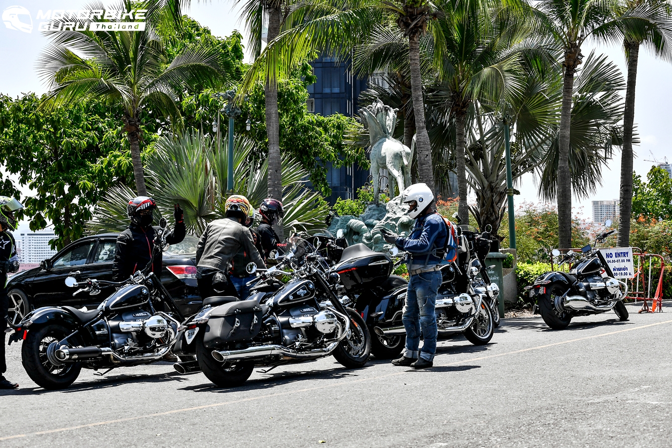 ขบวนฯ ข้ามไปวัดญาณสังวรารามวรมหาวิหาร, เขาชีจรรย์, ร้านมุมอร่อย, 331 สเตชันคอฟฟี่วอร์ ฯลฯ โดยระหว่างที่แวะก็ได้มีโอกาสสลับเปลี่ยนไปขี่ R18 รุ่นอื่นๆ ด้วย ส่วนตัวชอบ R18 B และ First Edition แฮนด์ยกแบบ Ape hanger ที่ดูเหมือนขี่ลำบากแต่พออยู่กับบอดี้ R18 บ็อกเซอร์แล้วขี่สบายไปได้เรื่อยๆ ให้ความรู้สึกที่น่าทึ่งและตื่นเต้นกับทุกการขับเคลื่อนจริงๆ ไม่แปลกใจที่เจ้าของบิ๊กไบค์ครุยเซอร์หลายคนมักชอบใช้แฮนด์บาร์แบบนี้ การขี่บีเอ็มดับเบิลยู R18 หลายรุ่น มากแบบในวันเดียวอาจบอกรายละเอียดการขี่แบบเจาะลึกไม่ได้มาก แต่โดยรวมก็ประทับใจกับรูปลักษณ์ ท่านั่ง สมรรถนะแรงบิด และรายละเอียดการประกอบที่ดีไร้จุดติงจริงๆ ที่ชอบรวมๆ คือ ตัวรถแม้หนัก 345 กก. แต่ก็ยังควบคุมได้ดีทั้งตอนขี่และเข้าจอด การขี่ตามกันช่วงขึ้นทางชันก็ยังวางใจได้ด้วยระบบ Hill start control (ระบบช่วยออกตัวบนทางลาดชัน) ที่ให้มาเป็นพื้นฐานในทุกรุ่นย่อย และเลือกโหมดขี่ได้ถึง 3 แบบ Riding Modes (Rock, Roll และ Rain) งานนี้ได้ใช้โหมด Rock เกือบตลอดเส้นทางการขี่นับว่าตอบสนองได้อย่างน่าพอใจ ใครที่สงสัยว่าเบาะรถสูงแค่ไหน R18 เบาะสูง 690 มม. ผู้เขียนที่สูง 171 ซม. คร่อมนั่งเท้าแตะพื้นเต็มยังงอเข่าได้อีก และที่ช่วยให้จอดลุกนั่งสบายก็เป็น Keyless Ride (ระบบสตาร์ทแบบไร้กุญแจ) สำหรับใครที่สนใจ R18 ก็สามารถเป็นเจ้าของได้กับรุ่น First Edition ค่าตัว 1,150,000 บาท